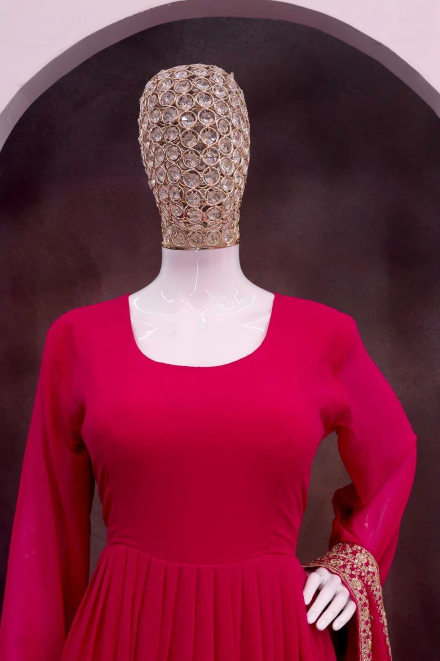 RICH LOOK GEORGETTE EMBROIDERY SEQUENCE WORK GOWN BOTTOM WITH DUPATTA RANI