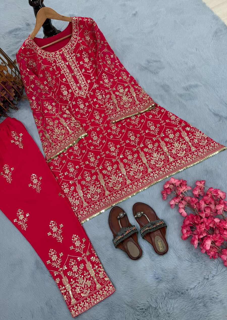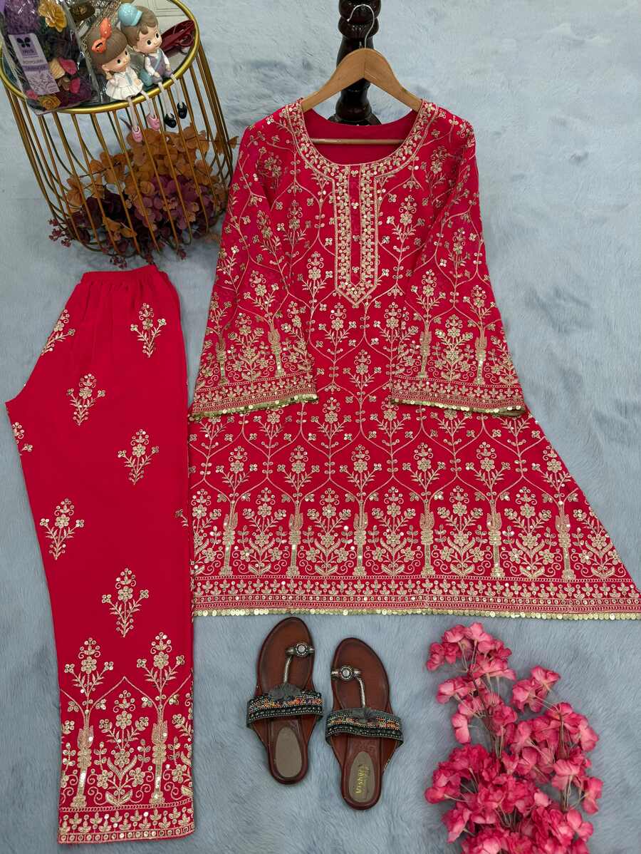RICH LOOK GEORGETTE EMBROIDERY SEQUENCE WORK WITH FANCY LACE BORDER WORK TOP BOTTOM SET PINK
