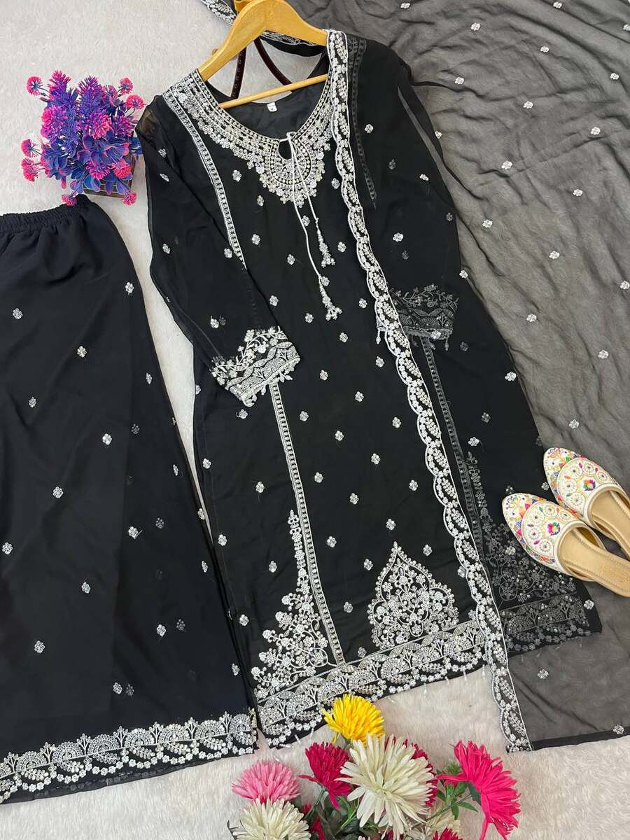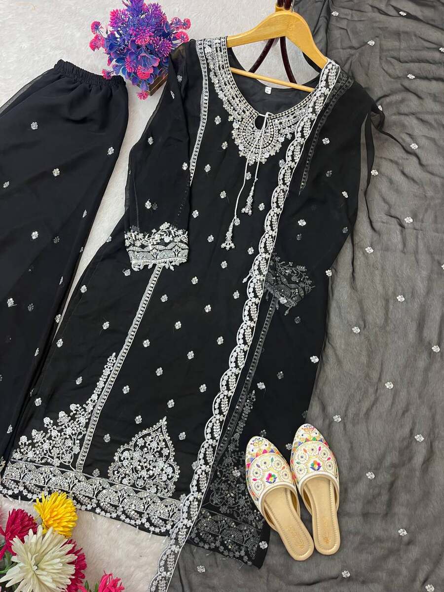 RICH LOOK GEORGETTE EMBROIDERY SEQUENCE WORK WITH FANCY LATKAN WORK TOP PALAZZO WITH DUPATTA BLACK