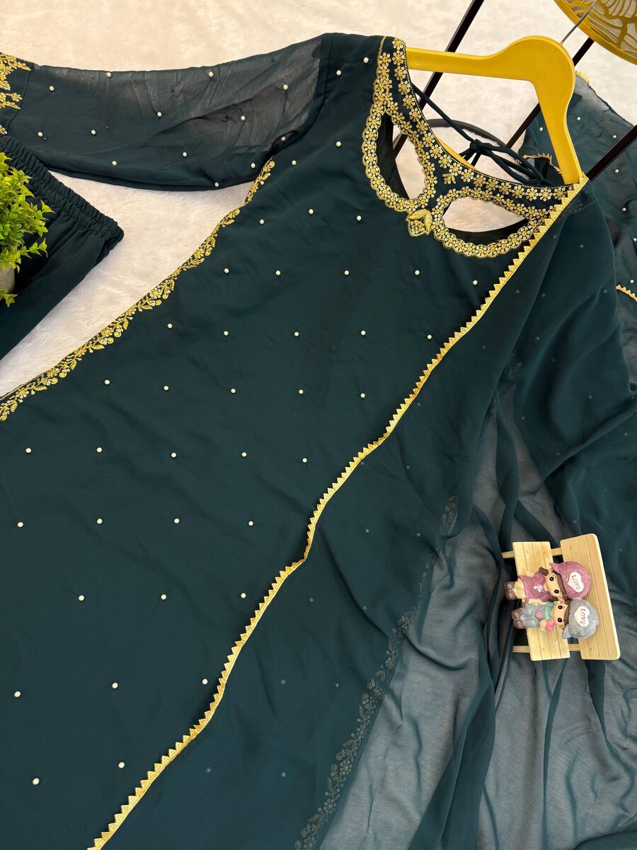 RICH LOOK GEORGETTE EMBROIDERY WORK WITH REAL PEARL MOTI WORK TOP BOTTOM WITH DUPATTA MORPICH