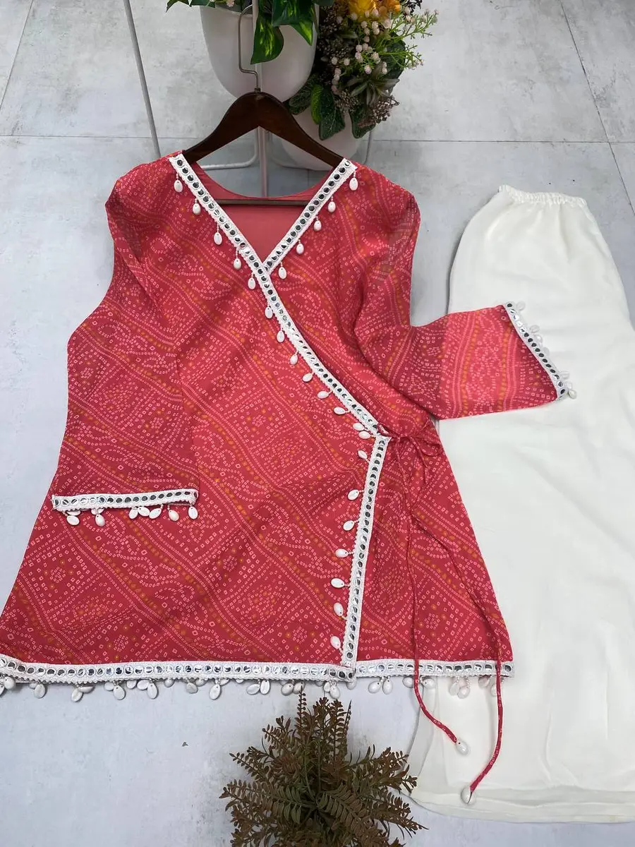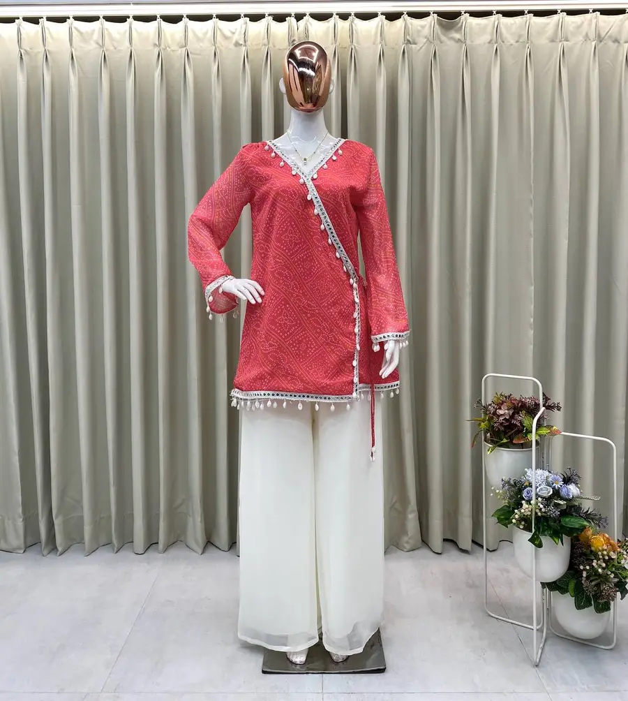RICH LOOK GEORGETTE PRINTED WITH KODI LACE WORK KURTI PALAZZO SET PINK
