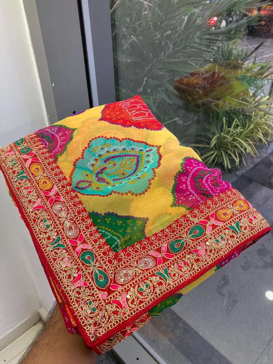WORK : RAJWADI BANDHEJ PRINT WITH HEAVY EMBROIDERY WORK LACE BORDER
