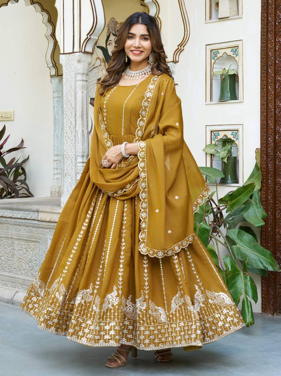 RICH LOOK GEORGETTE SEQUENCE EMBROIDERY WORK GOWN WITH DUPATTA MUSTARD