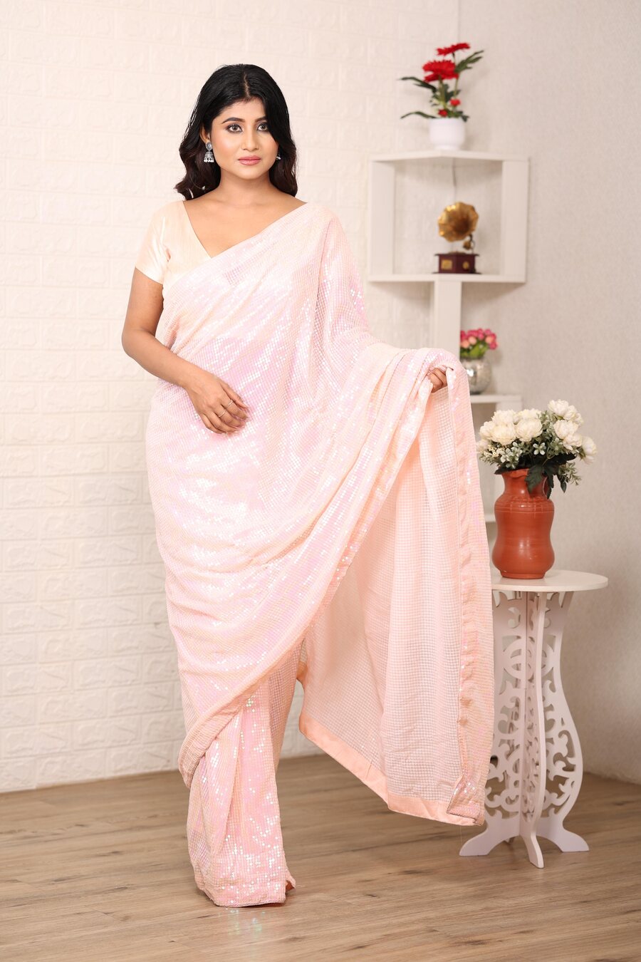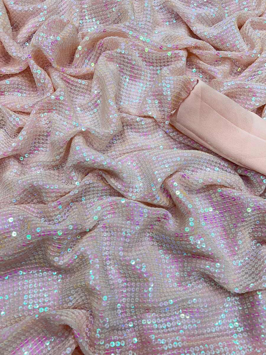 RICH LOOK GEORGETTE SEQUENCE EMBROIDERY WORK SAREE WITH UNSTITCHED BLOUSE BABY PINK