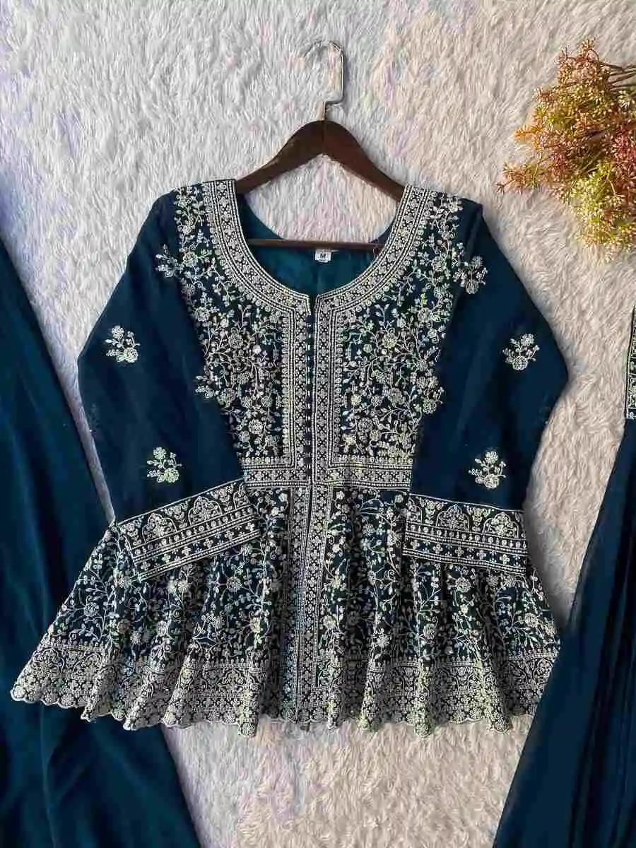 PALAZZO FABRIC :- HEAVY FAUX GEORGETTE WITH 5MM EMBROIDERY SEQUENCE WITH FULLY FLAIR