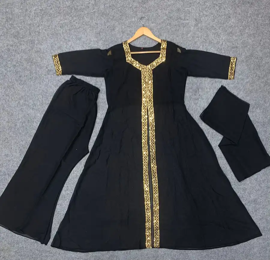 RICH LOOK GEORGETTE SEQUENCE WORK TOP BOTTOM WITH DUPATTA BLACK