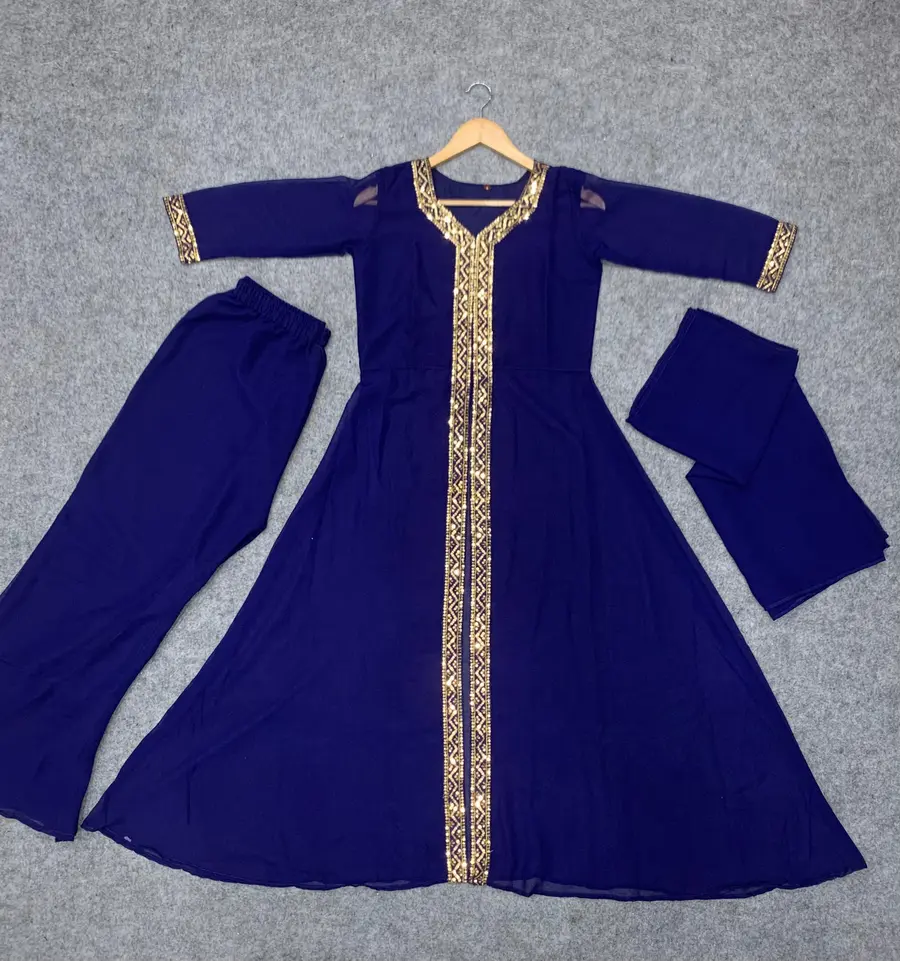 RICH LOOK GEORGETTE SEQUENCE WORK TOP BOTTOM WITH DUPATTA BLUE