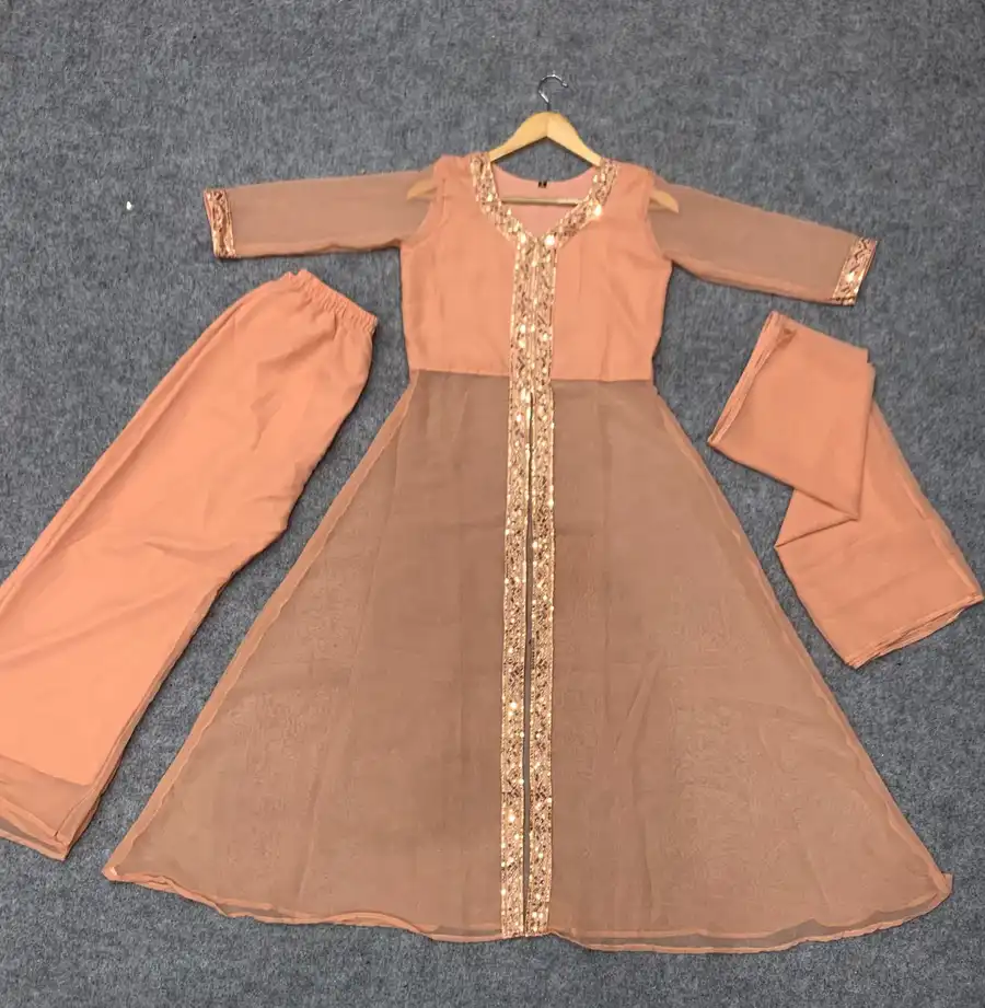 RICH LOOK GEORGETTE SEQUENCE WORK TOP BOTTOM WITH DUPATTA PEACH