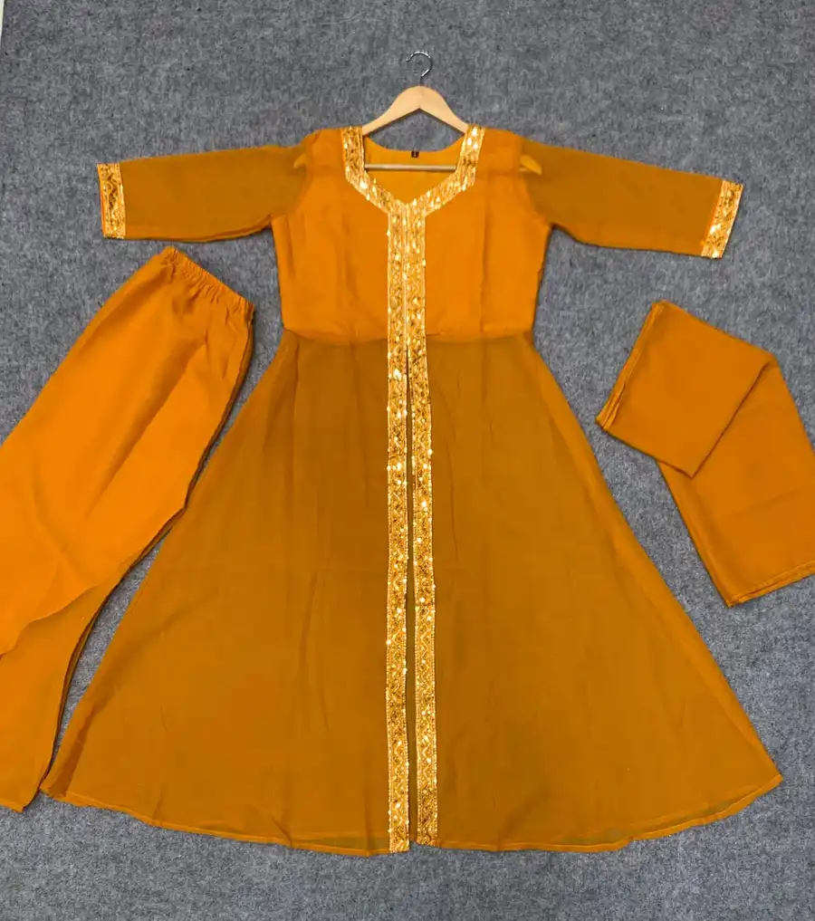 RICH LOOK GEORGETTE SEQUENCE WORK TOP BOTTOM WITH DUPATTA YELLOW
