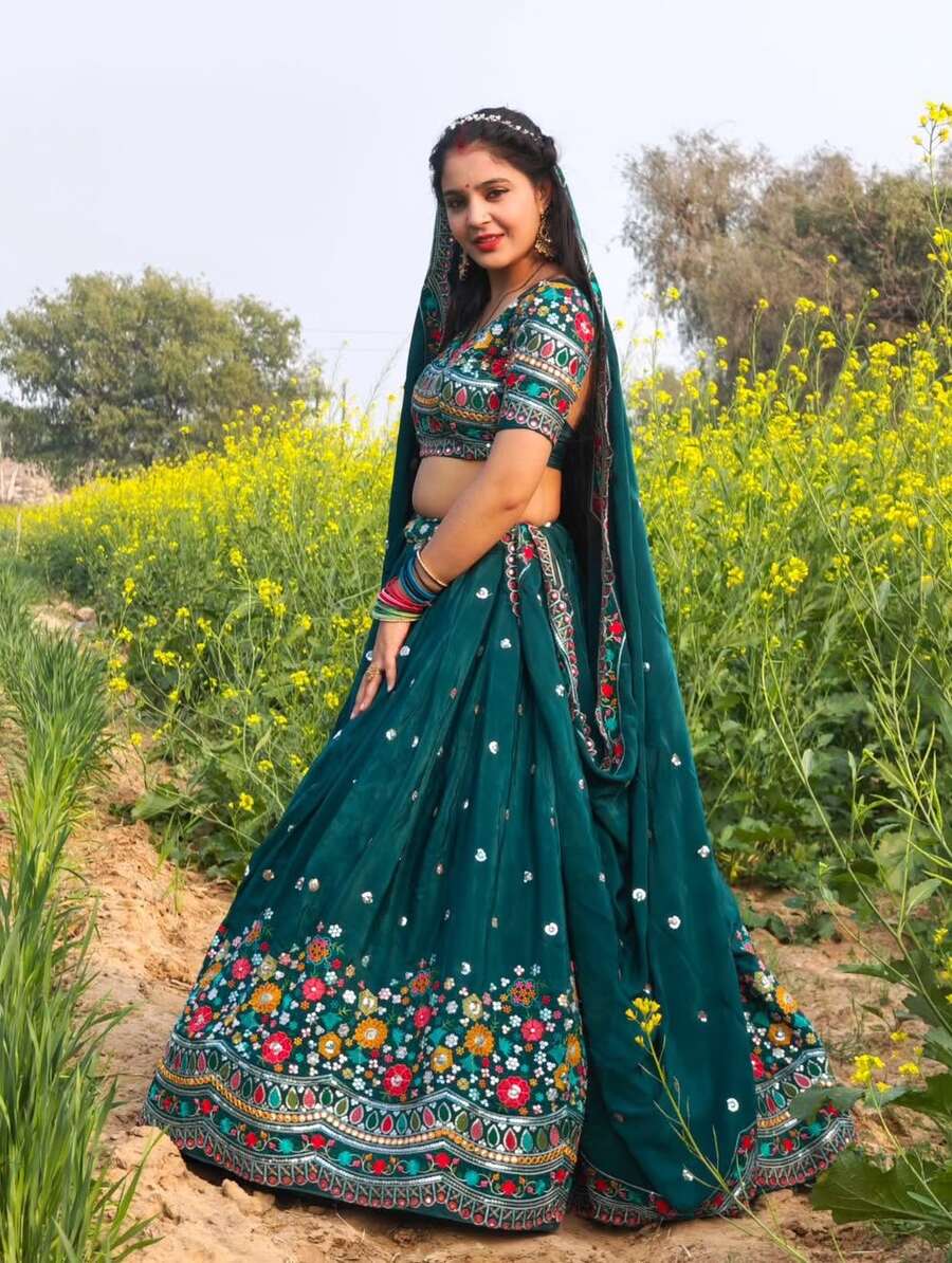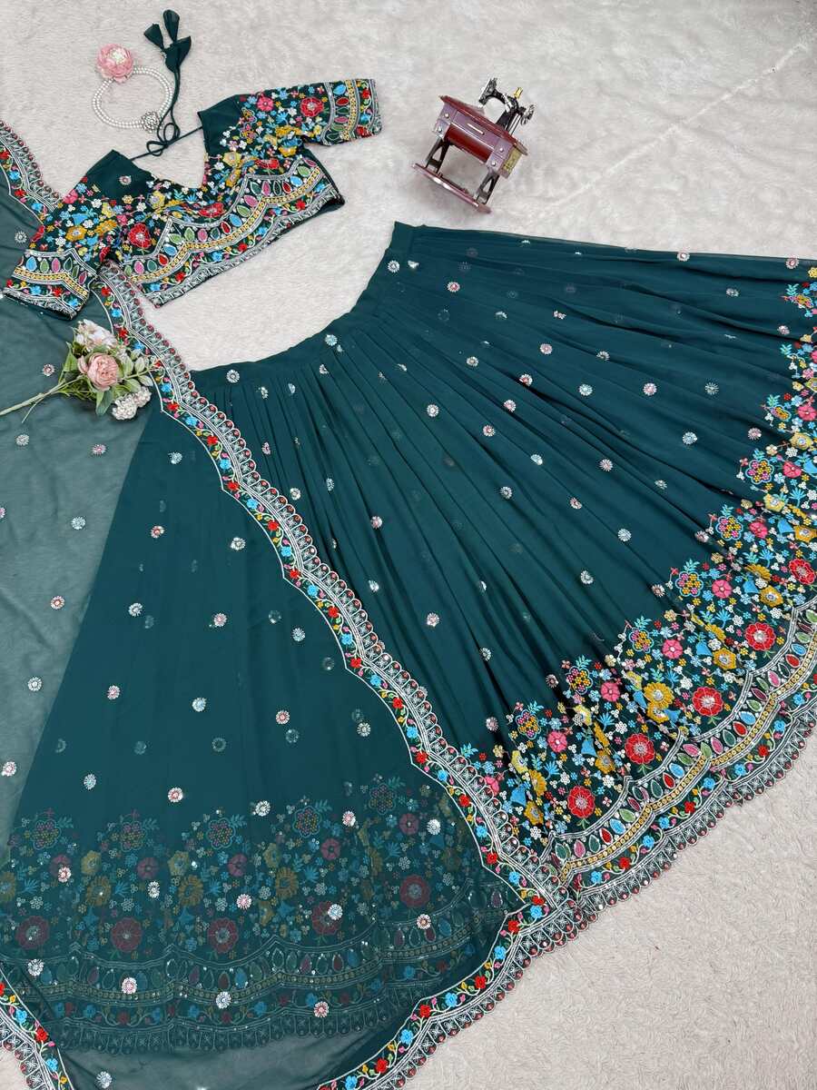 RICH LOOK GEORGETTE THREAD WITH SEQUENCE WORK LEHENGA CHOLI WITH DUPATTA GREEN