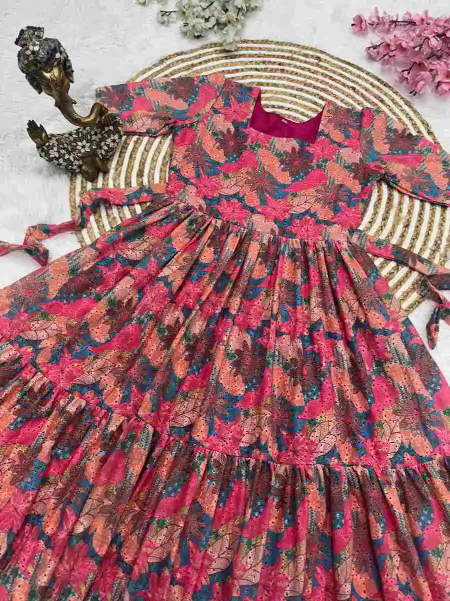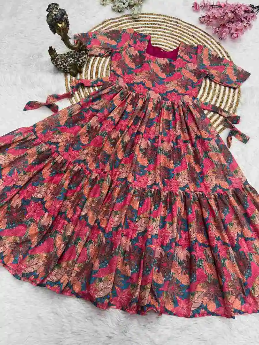 RICH LOOK HAKOBA COTTON PRINT WORK ONE PIECE DRESS RANI