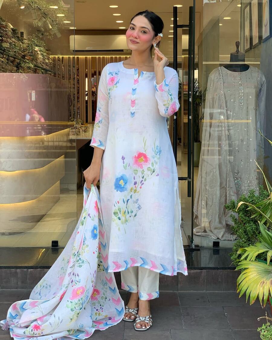 RICH LOOK LINEN DIGITAL PRINTED TOP BOTTOM WITH DUPATTA WHITE