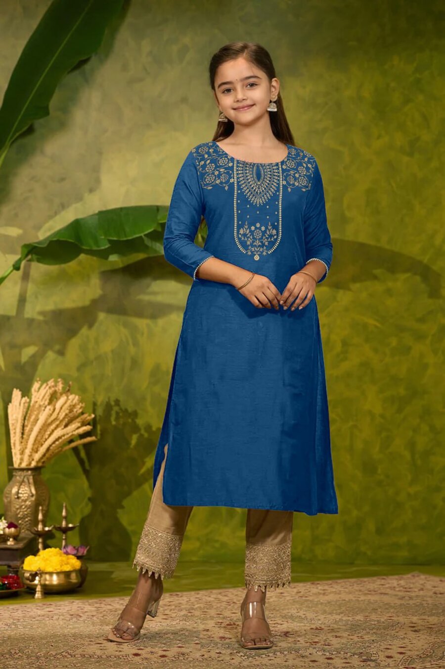 RICH LOOK MAGIC COTTON FOIL PRINT WORK KID’S ONLY KURTI TEAL