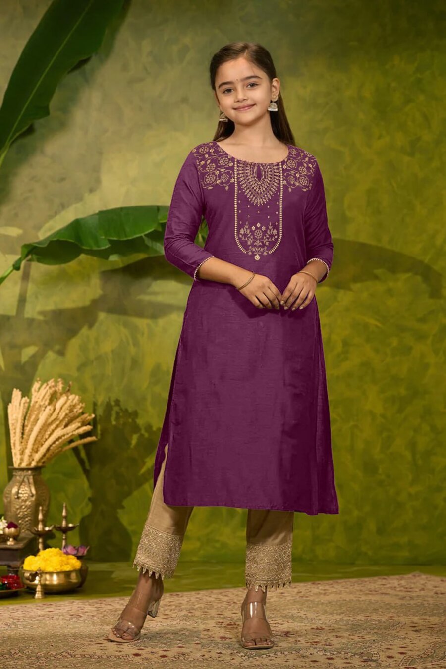 RICH LOOK MAGIC COTTON FOIL PRINT WORK KID’S ONLY KURTI WINE
