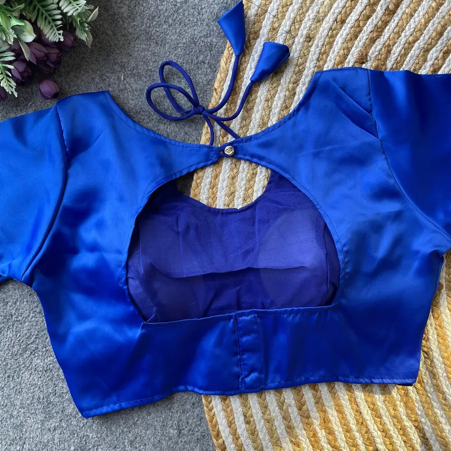 RICH LOOK MALAI SATIN PLAIN STITCHED BLOUSE BLUE