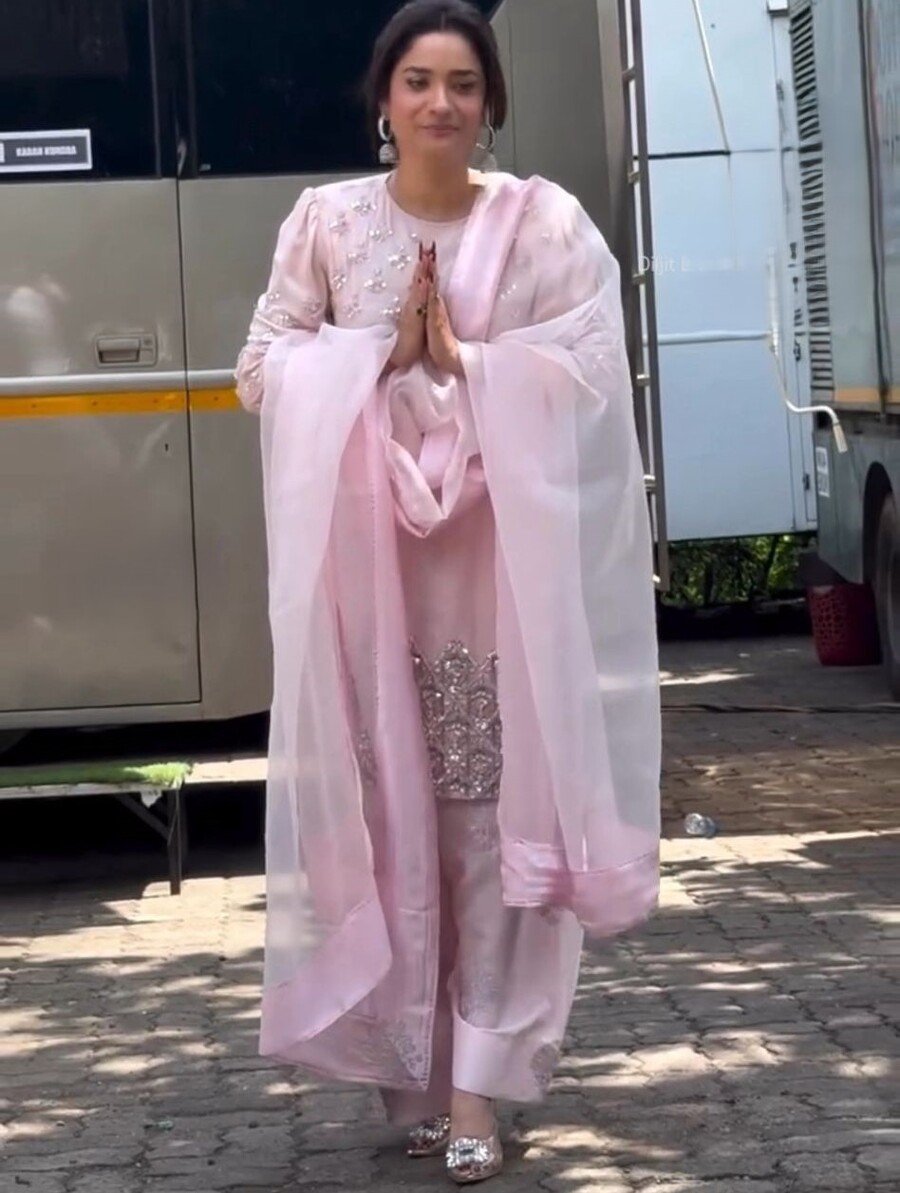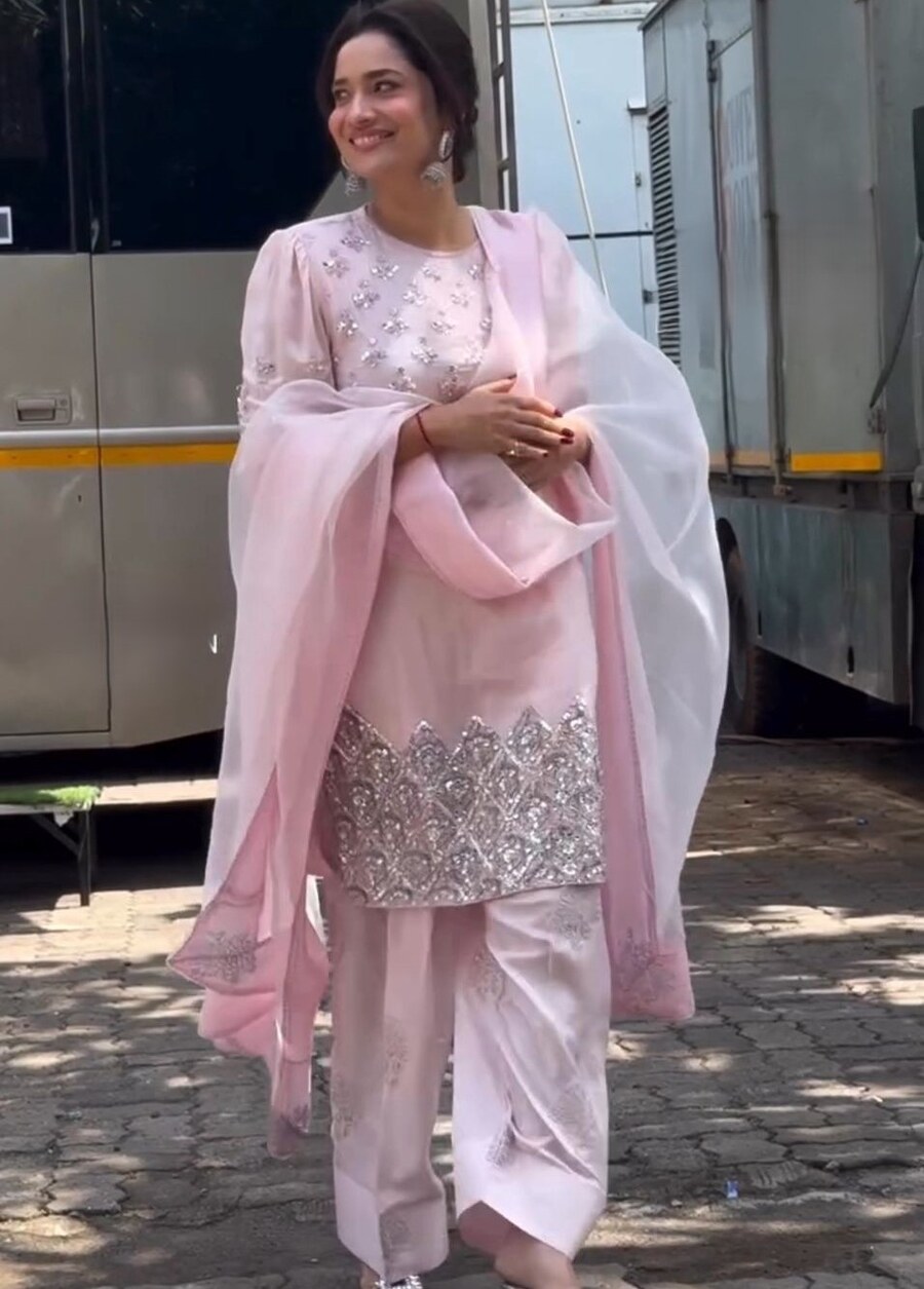 RICH LOOK NATURAL CREPE EMBROIDERY SEQUENCE WORK TOP PATIYALA WITH DUPATTA BABY PINK