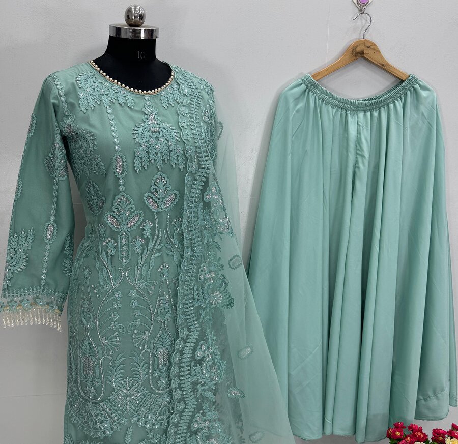 PALAZZO FABRIC :- HEAVY FAUX GEORGETTE WITH 5MM EMBROIDERY SEQUENCE WITH FULLY FLAIR
