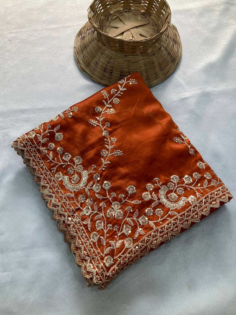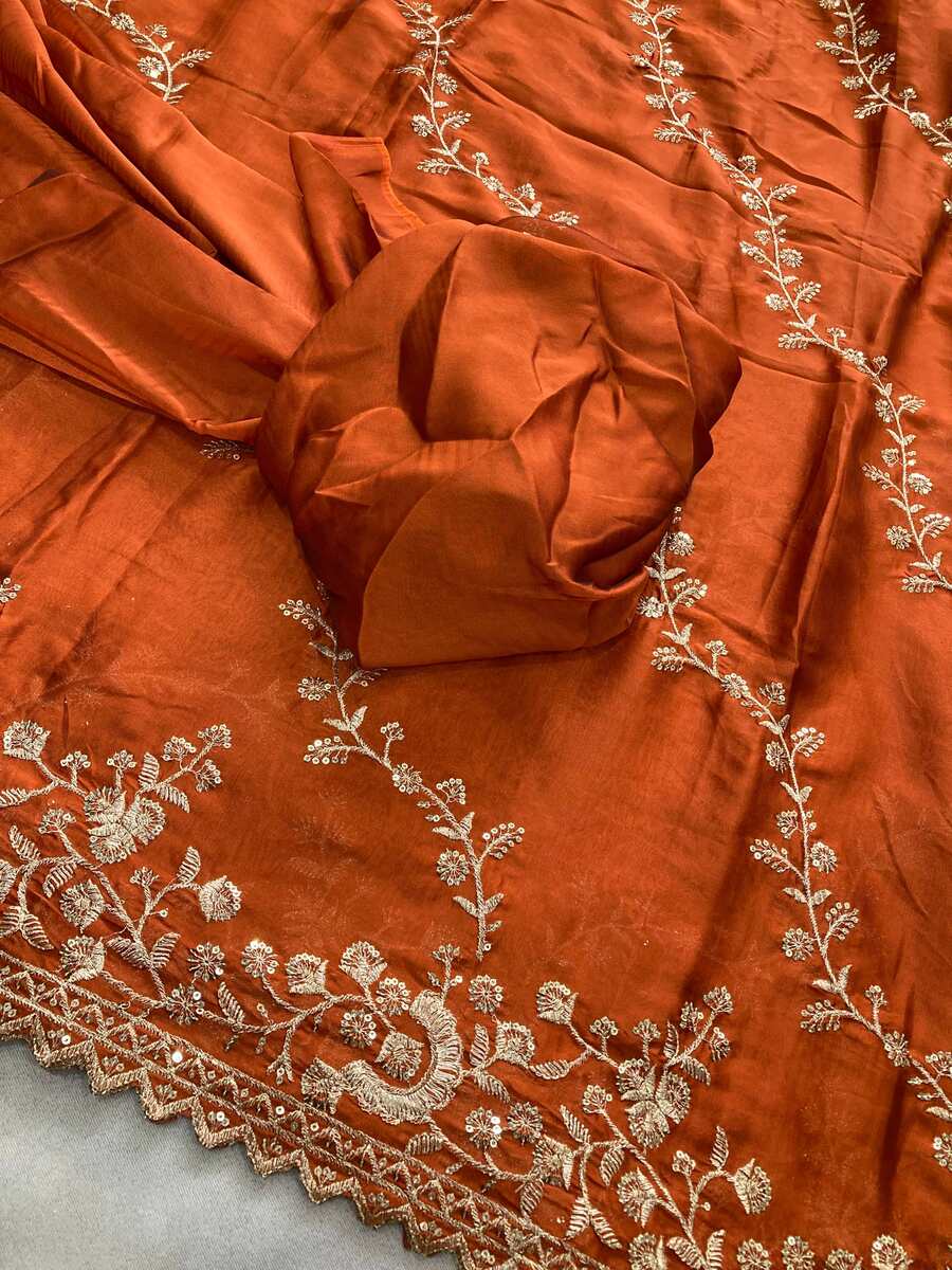 RICH LOOK RANGOLI SILK EMBROIDERY CUTWORK WORK LACE BORDER WORK SAREE WITH UNSTITCHED BLOUSE ORANGE