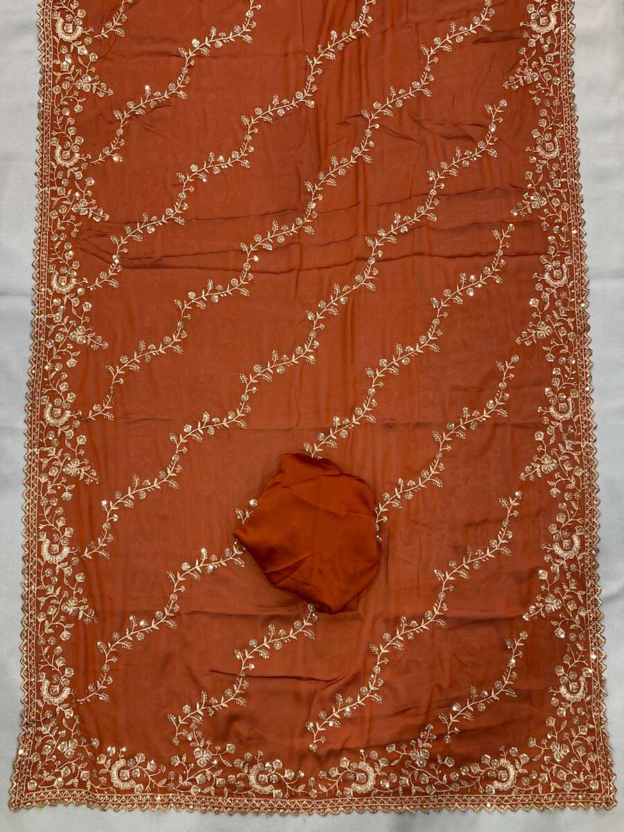 SAREE FABRIC : PURE SOFT JIMMY CHOO WITH HEAVY EMBROIDERY MULTI TREADS , CODING & SEQUENCE WORK & FANCY CUT WORK BORDER