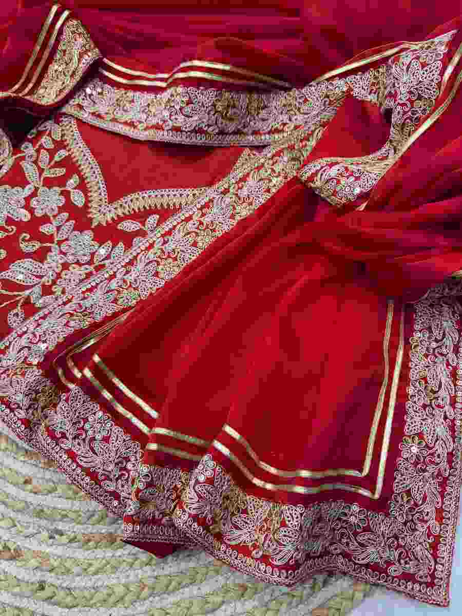 FABRIC : MONO BANGLORY SILK WITH HEAVY EMBROIDERY FRONT AND BACK BOTH SIDE WORK