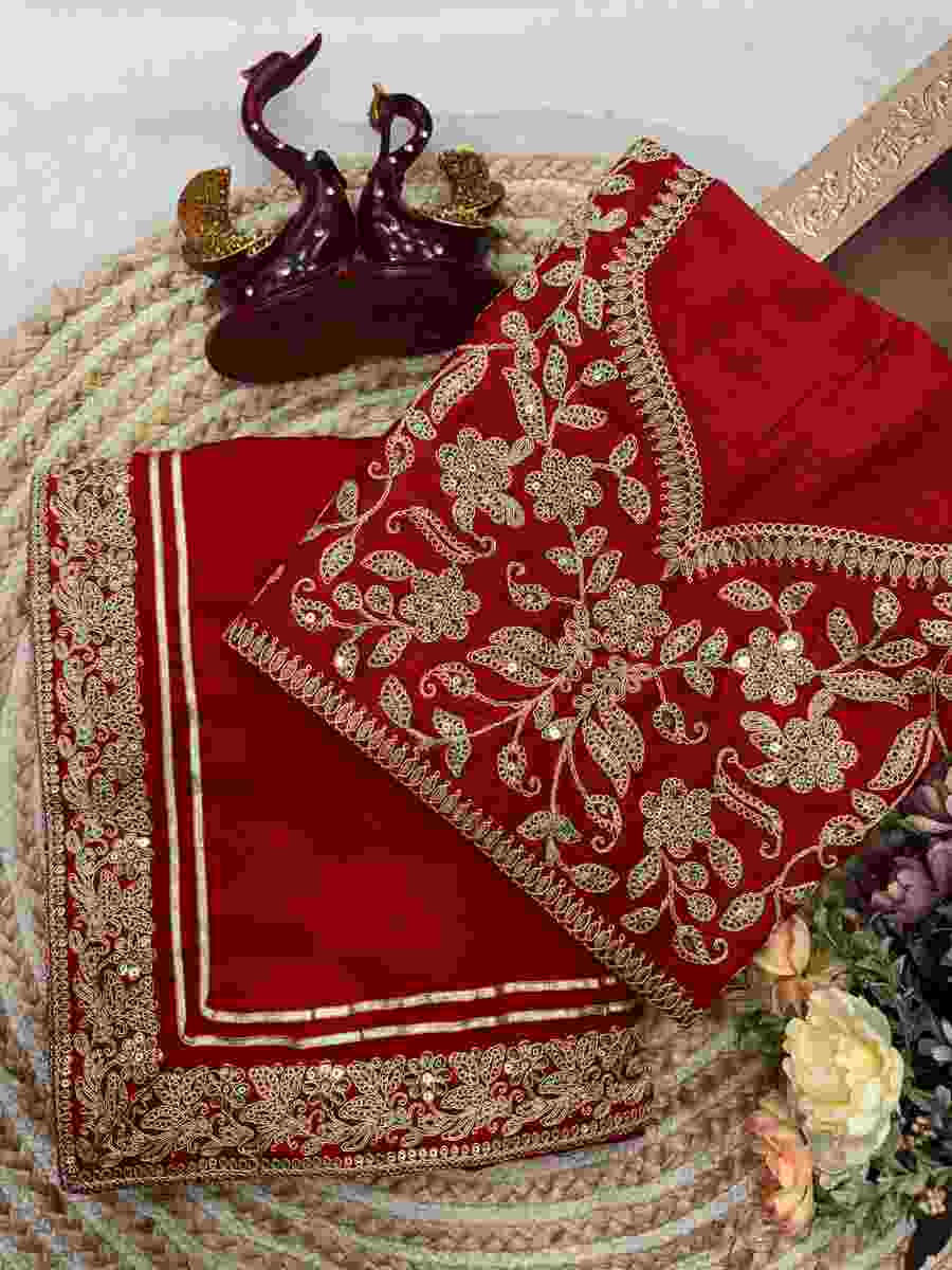RICH LOOK RANGOLI SILK SEQUENCE AND DORI EMBROIDERY WORK LACE BORDER WORK SAREE WITH UNSTITCHED BLOUSE RED