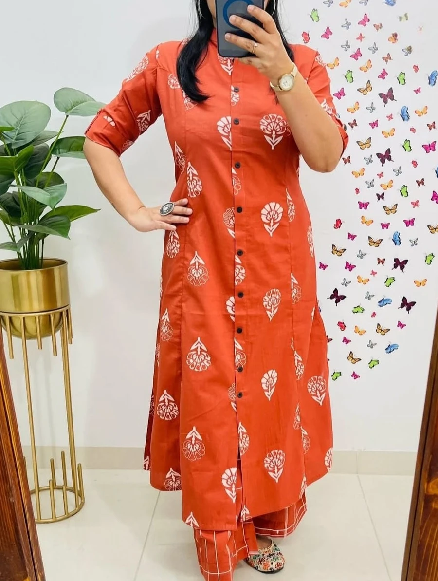 RICH LOOK RAYON DIGITAL PRINT WORK CO-ORD SET ORANGE