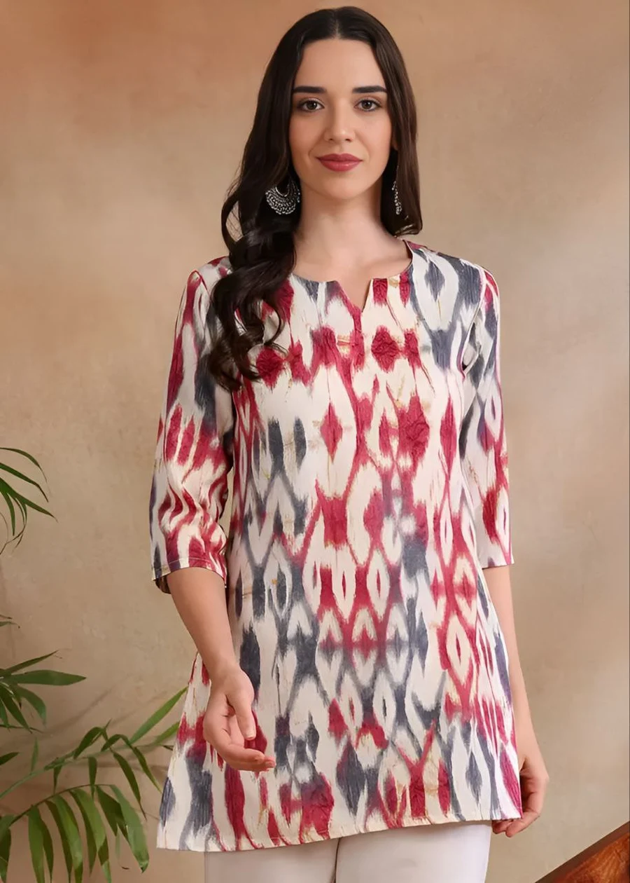 RICH LOOK RAYON DIGITAL PRINT WORK SHORT KURTI RED