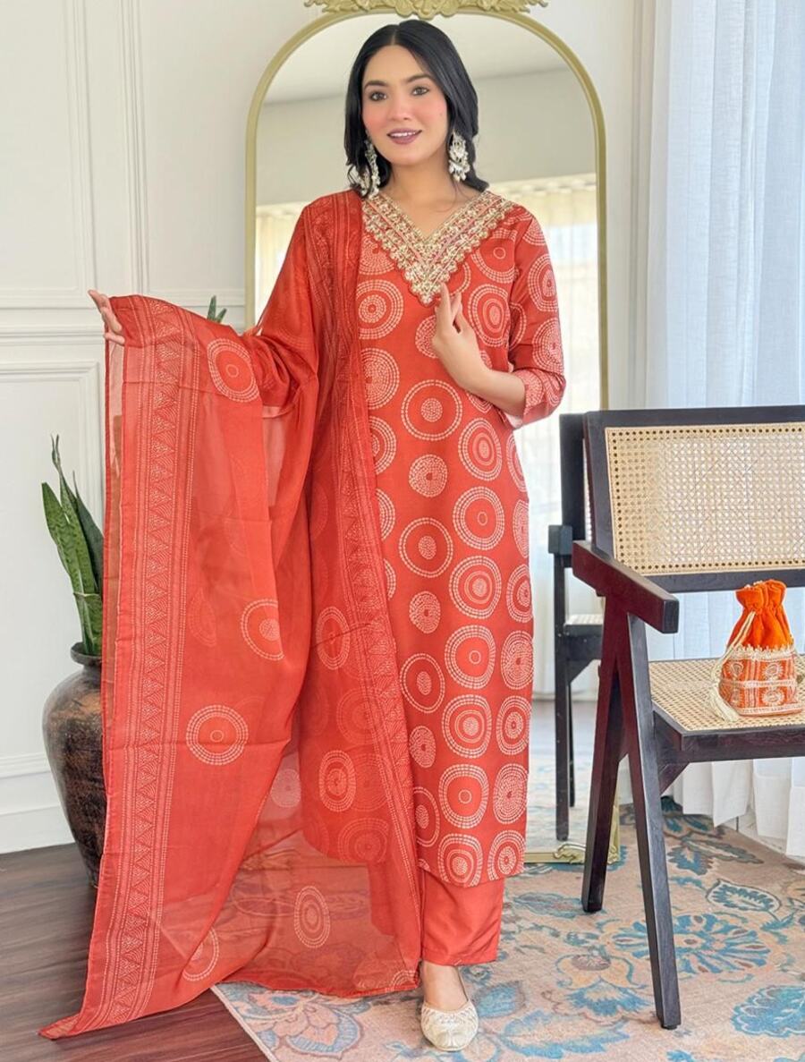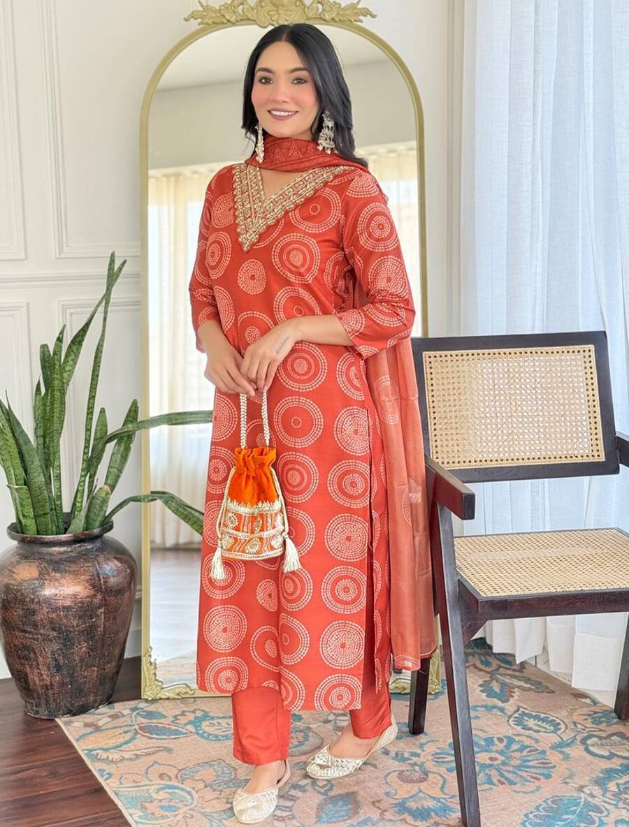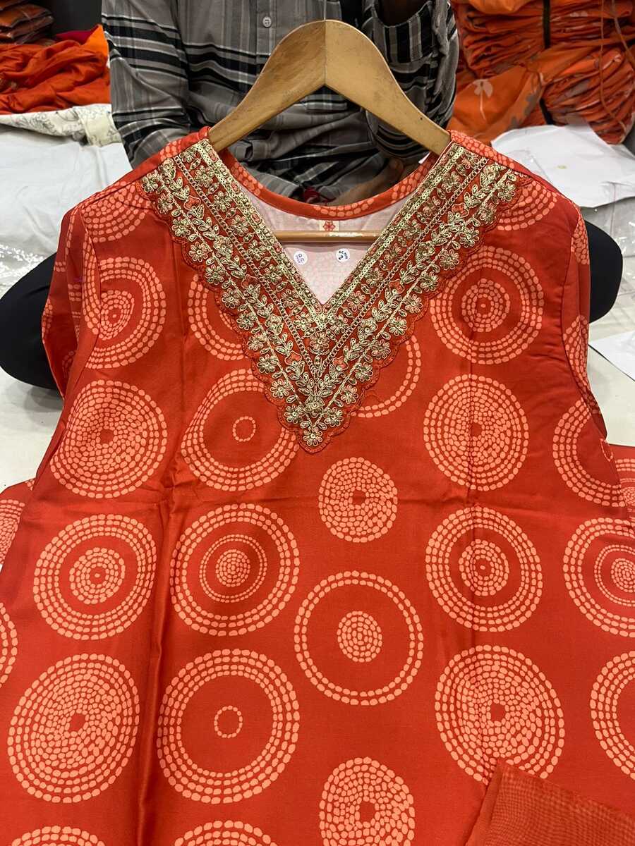 RICH LOOK RAYON PRINTED WITH EMBROIDERY WORK TOP BOTTOM WITH DUPATTA RED