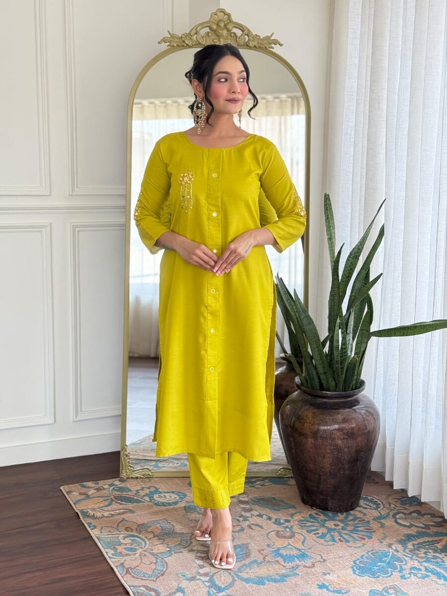 RICH LOOK ROMAN SILK HAND WORK TOP BOTTOM WITH DUPATTA LEMON