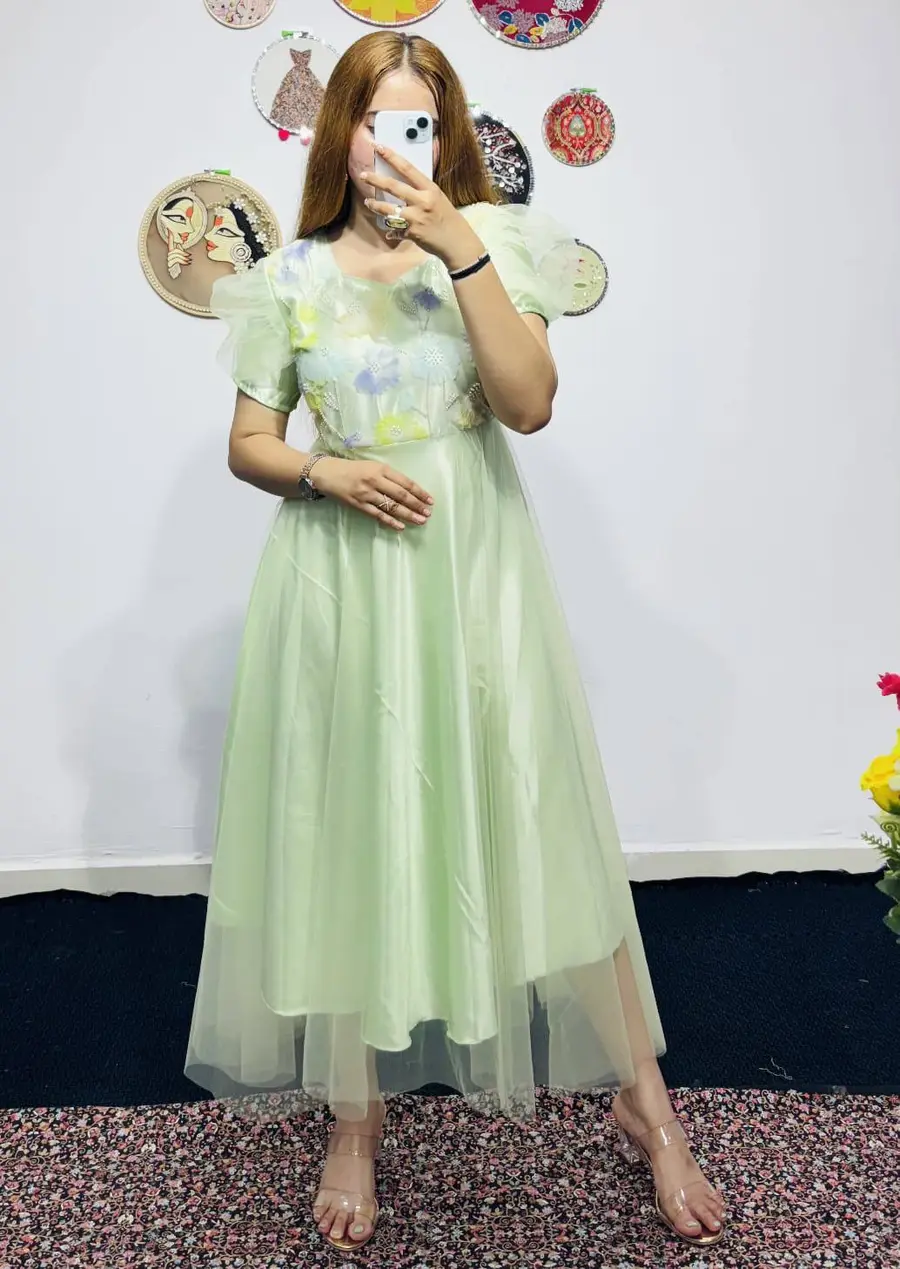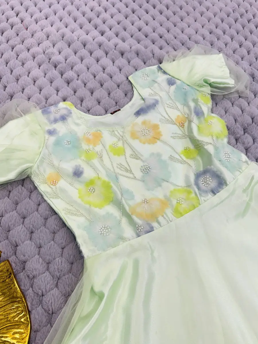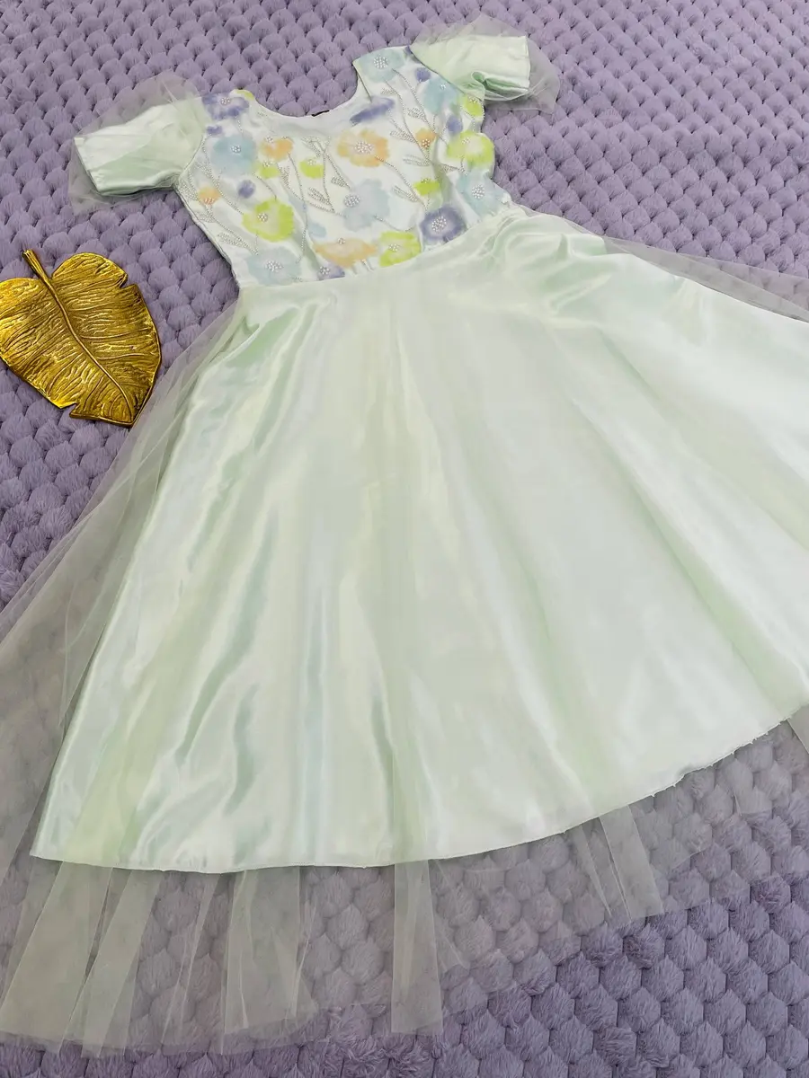 RICH LOOK SATIN BEADS AND NET WORK ONE PIECE DRESS MINT