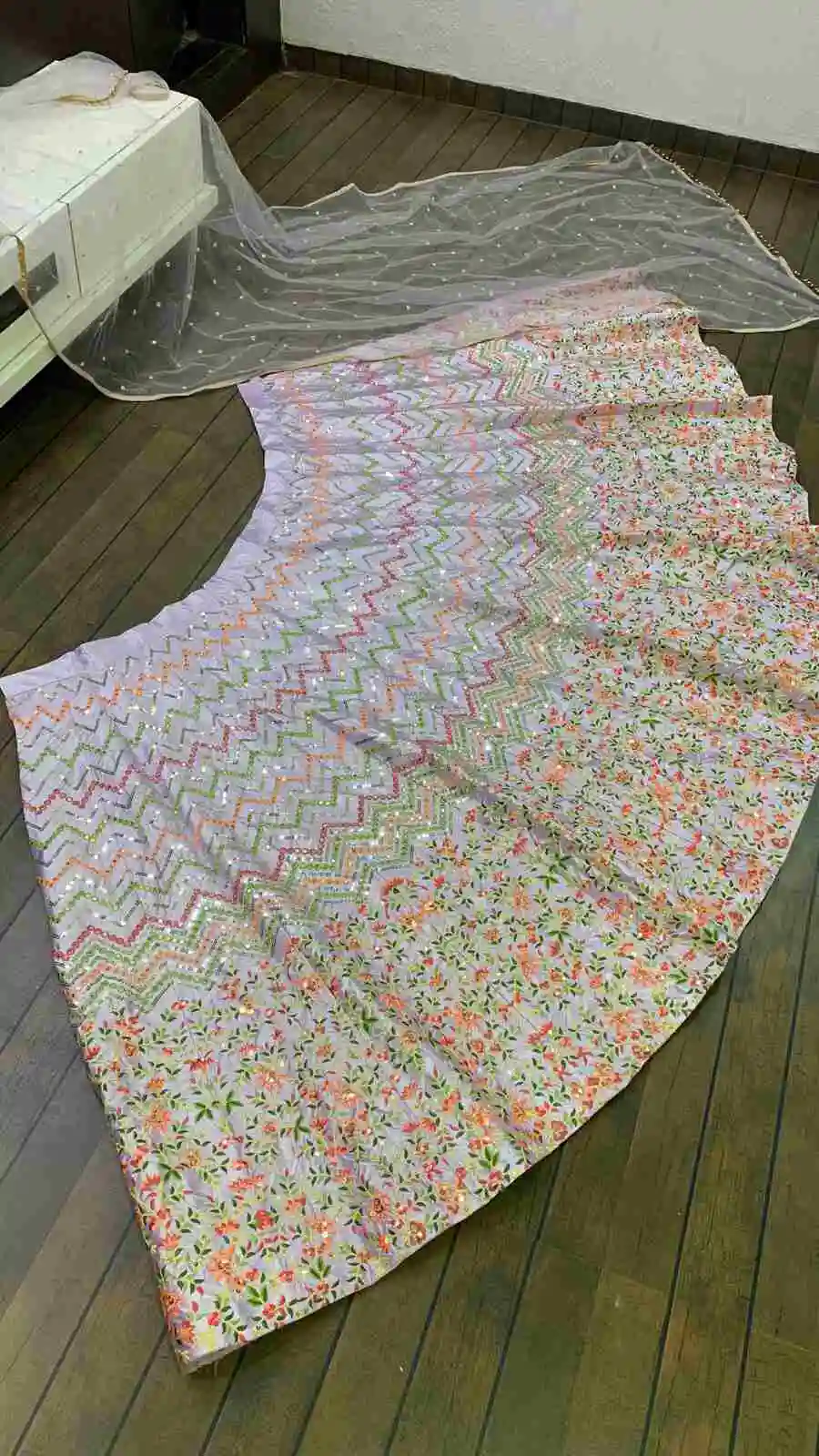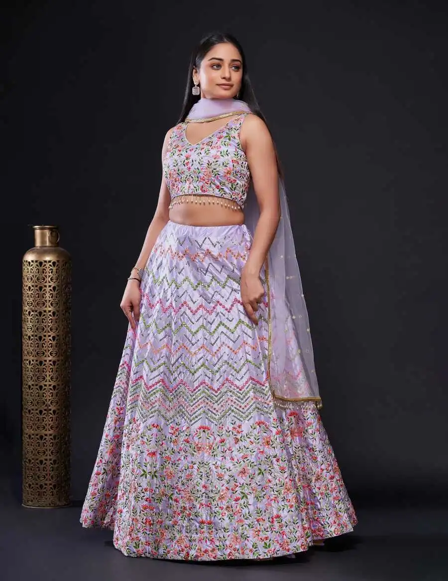 RICH LOOK SATIN SILK SEQUENCE & THREAD WORK LEHENGA CHOLI WITH DUPATTA LAVENDER