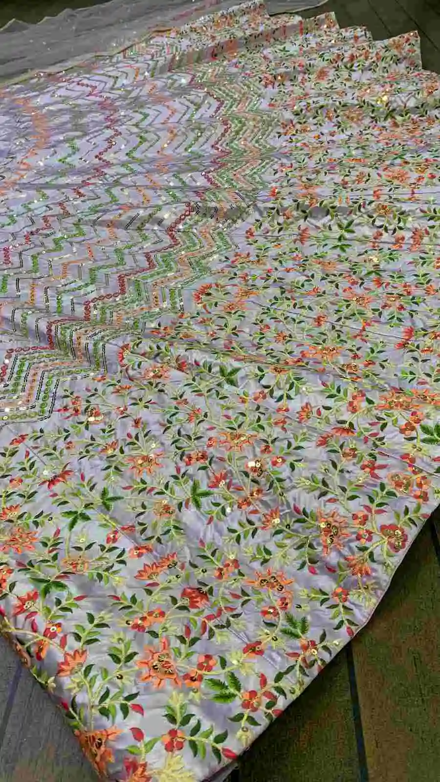 LEHENGA WORK :-SEQUENCE 3MM, MULTI MIDDLE WORK, ZARI WORK, EMBROIDERY WORK.