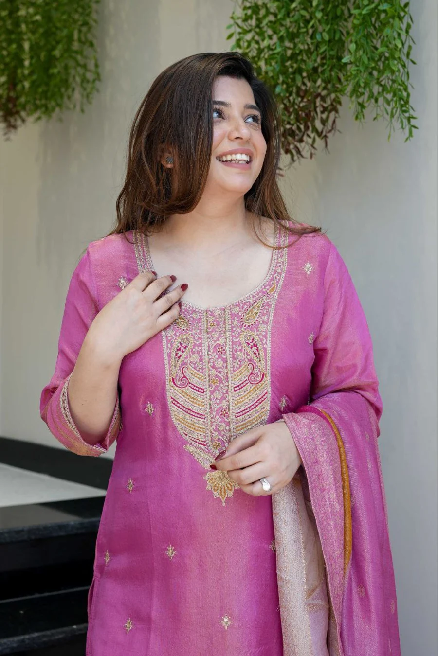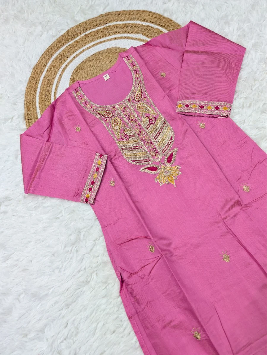 RICH LOOK SHIMMER SILK SEQUENCE CODING EMBROIDERY WORK TOP BOTTOM WITH DUPATTA PINK
