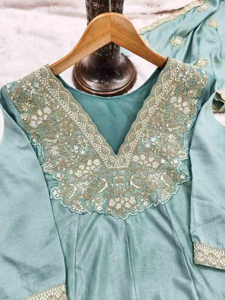 RICH LOOK SILK EMBROIDERY SEQUENCE CODING WORK TOP BOTTOM WITH DUPATTA SKY