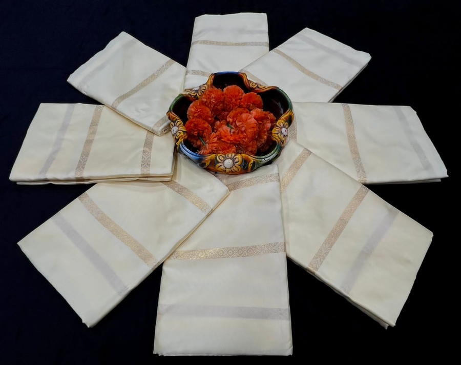 RICH LOOK SILK ORIGINAL GOLD ZARI WITH JACQUARD WORK SAREE WITH UNSTITCHED BLOUSE OFF WHITE