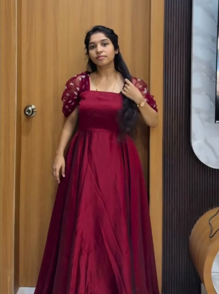 RICH LOOK SPACE SILK & NET THREAD EMBROIDERY WORK GOWN MAROON