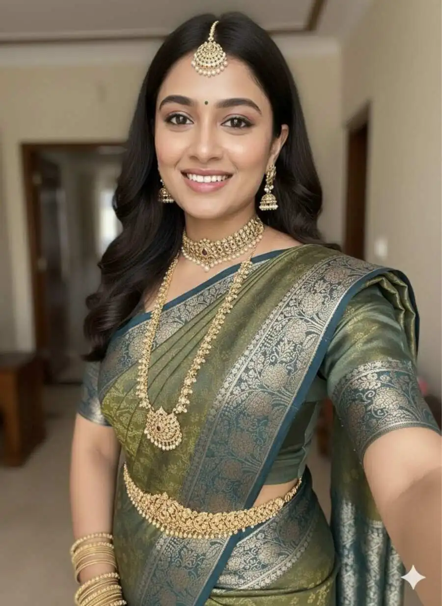 RICH LOOK SPACE SILK ZARI BORDER WEAVING WORK SAREE WITH UNSTITCHED BLOUSE MEHNDI