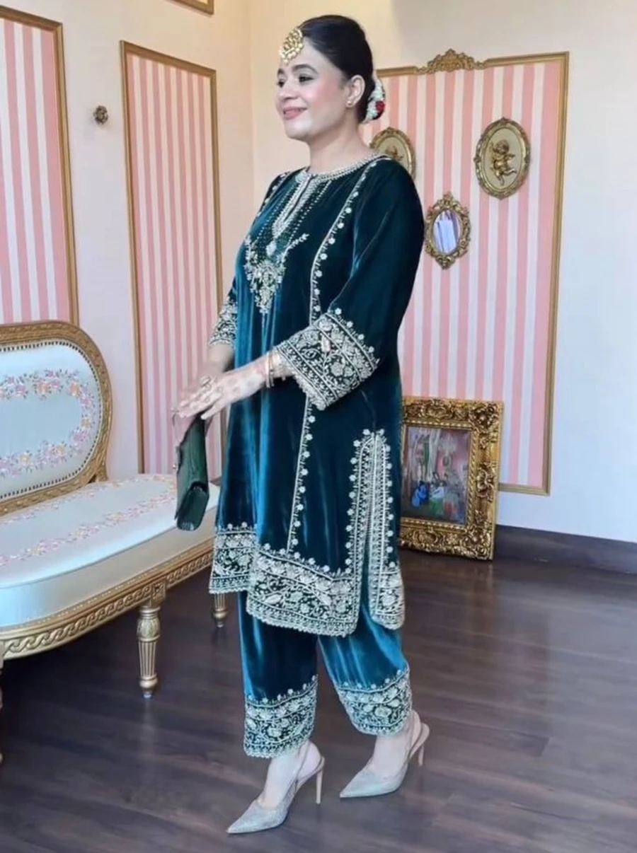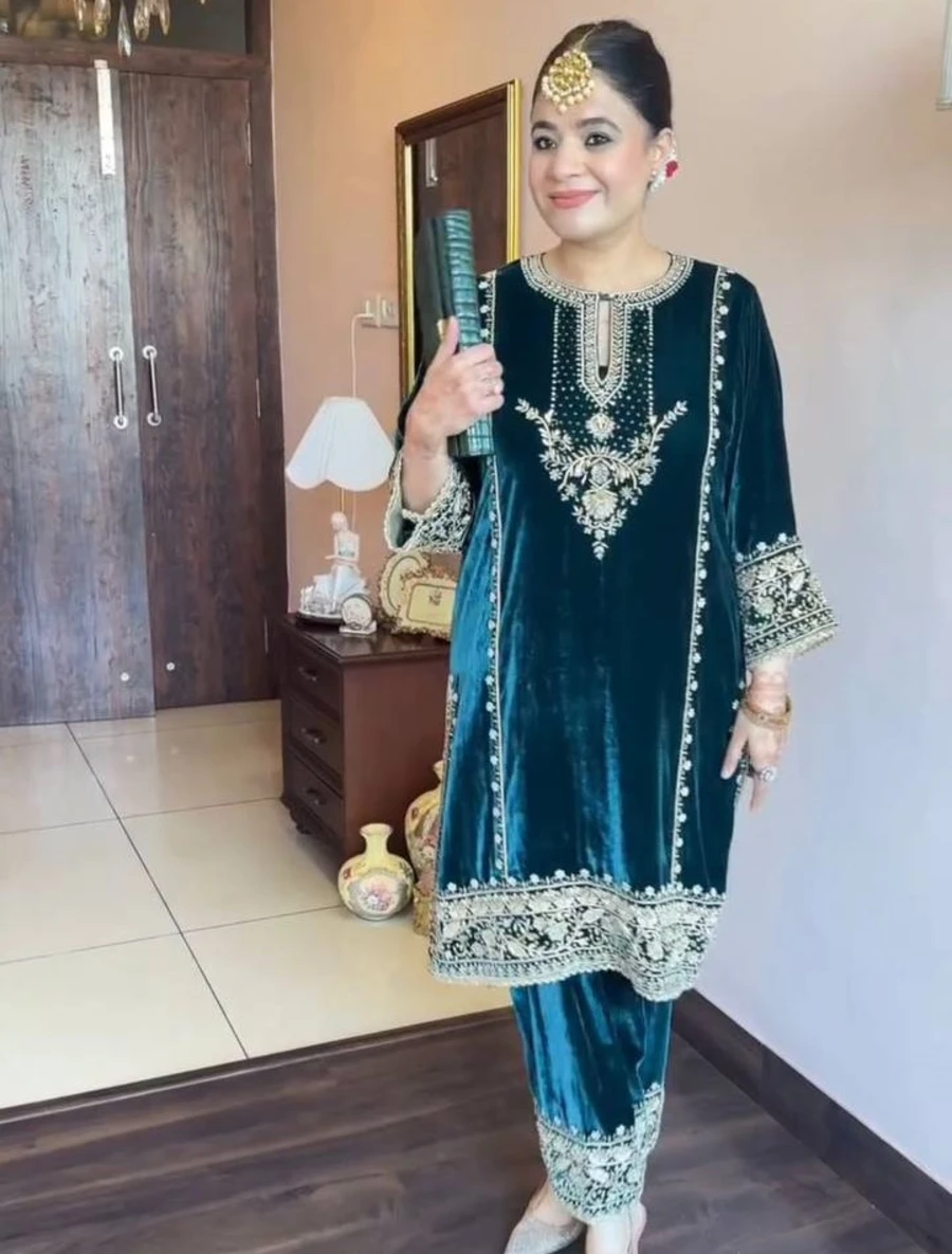 RICH LOOK VELVET SEQUENCE EMBROIDERY WORK TOP PALAZZO WITH DUPATTA RAMA