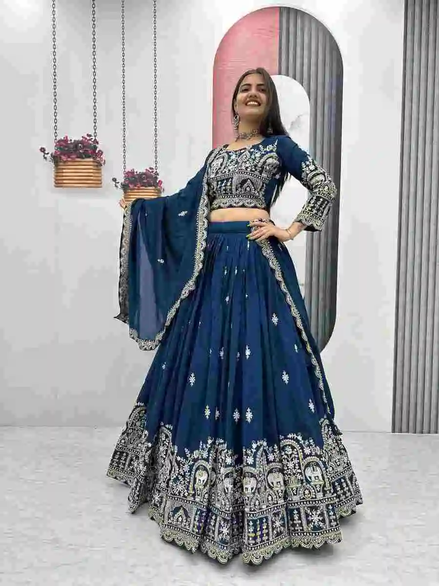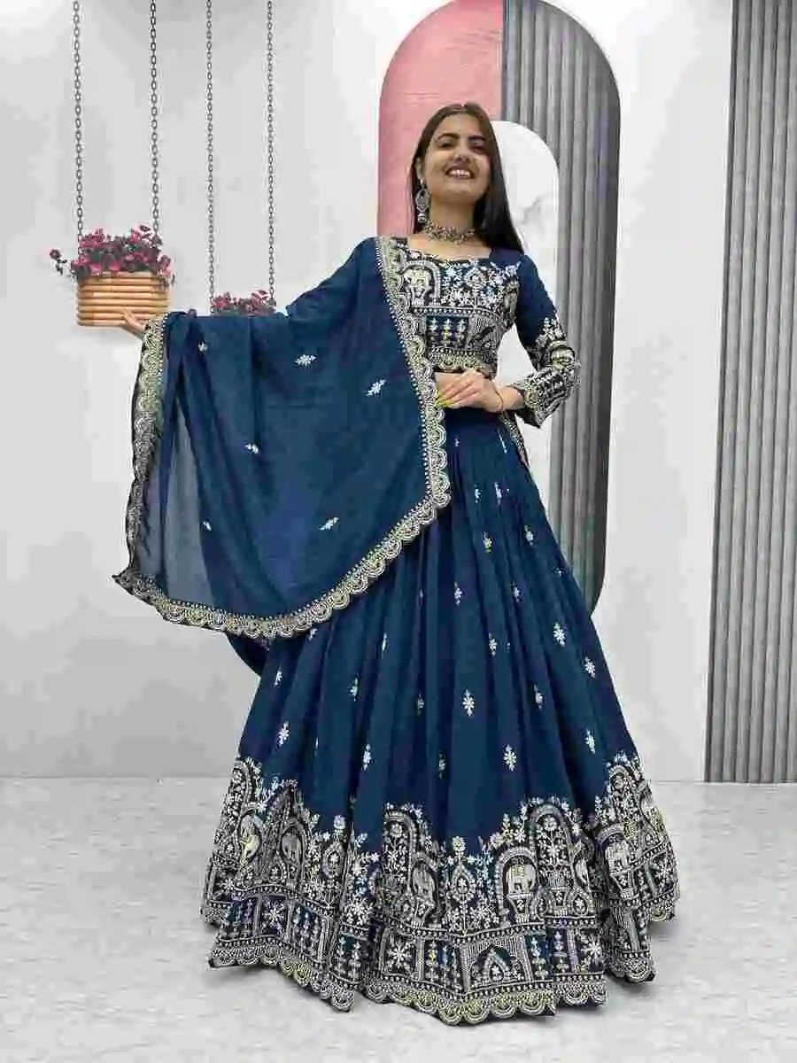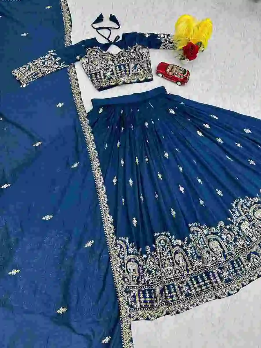 RICH LOOK VICHITRA SILK EMBROIDERY THREAD & SEQUENCE WORK LEHENGA CHOLI WITH DUPATTA BLUE
