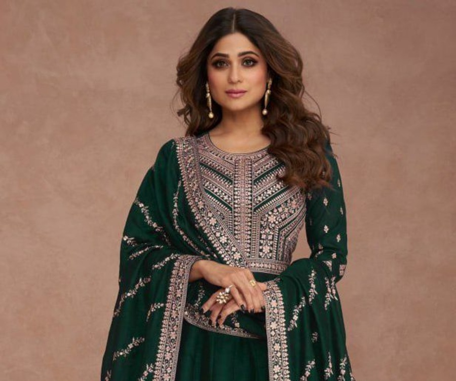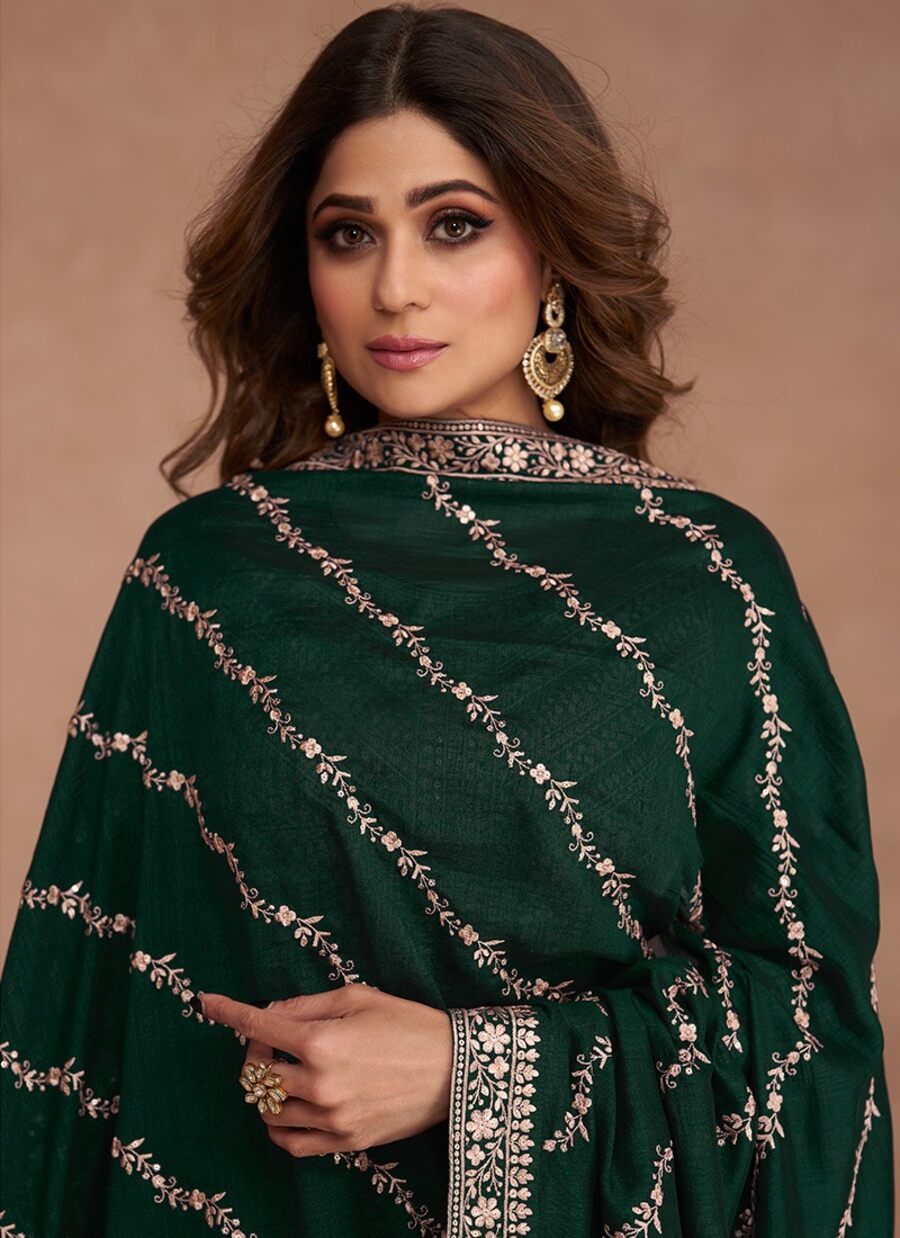 RICH LOOK VICHITRA SILK EMBROIDERY ZARI SEQUENCE WORK GOWN WITH DUPATTA GREEN