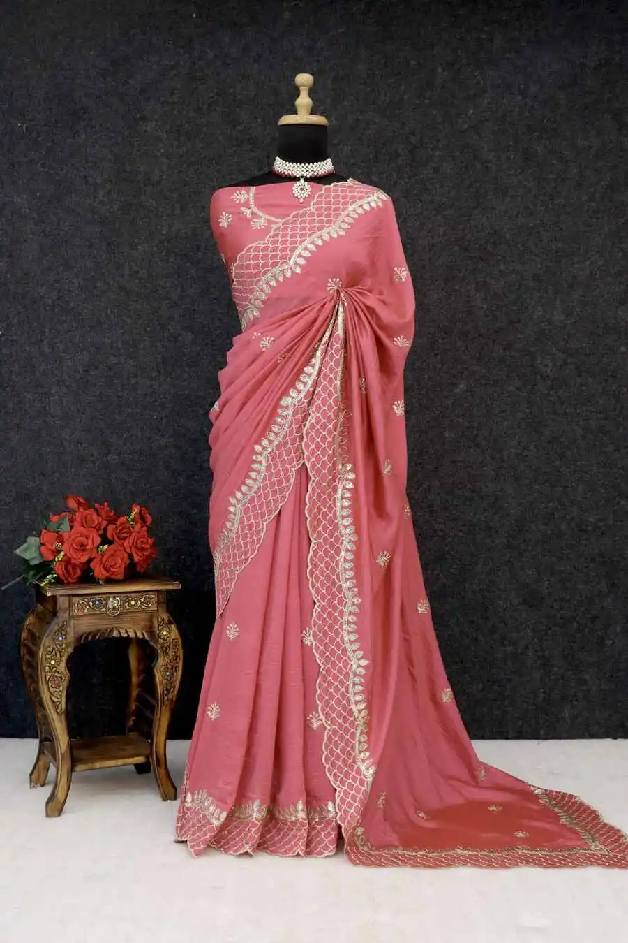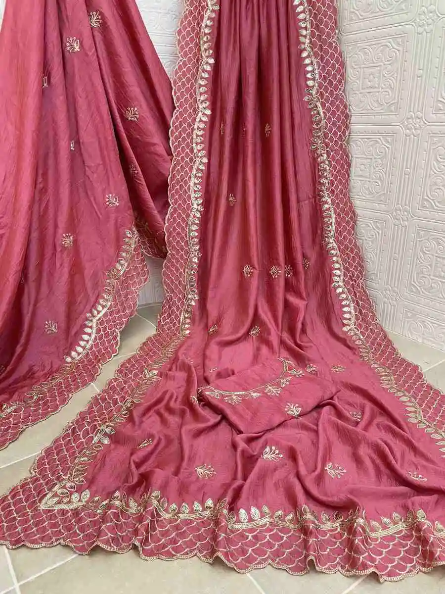 SAREE FABRIC : PREMIUM DIAMOND CHINON SILK WITH HEAVY EMBROIDERY CODING MULTI TREADS AND SEQUENCE WORK