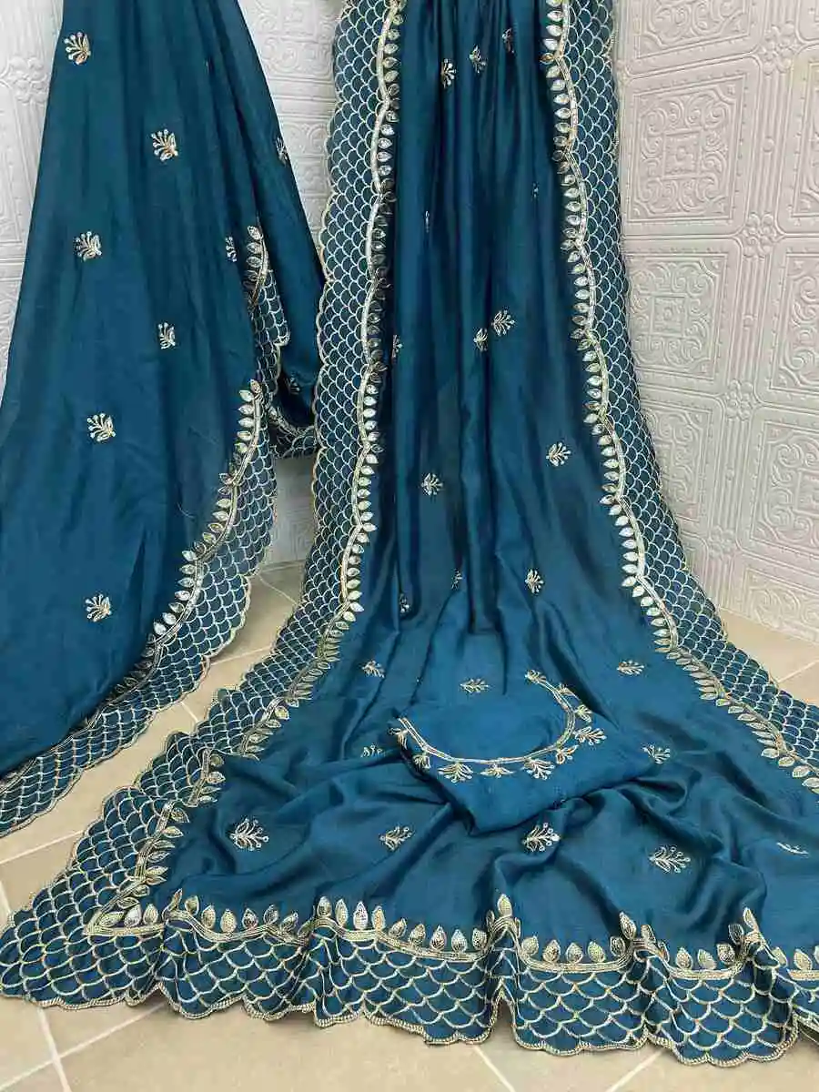 SAREE FABRIC : PREMIUM DIAMOND CHINON SILK WITH HEAVY EMBROIDERY CODING MULTI TREADS AND SEQUENCE WORK