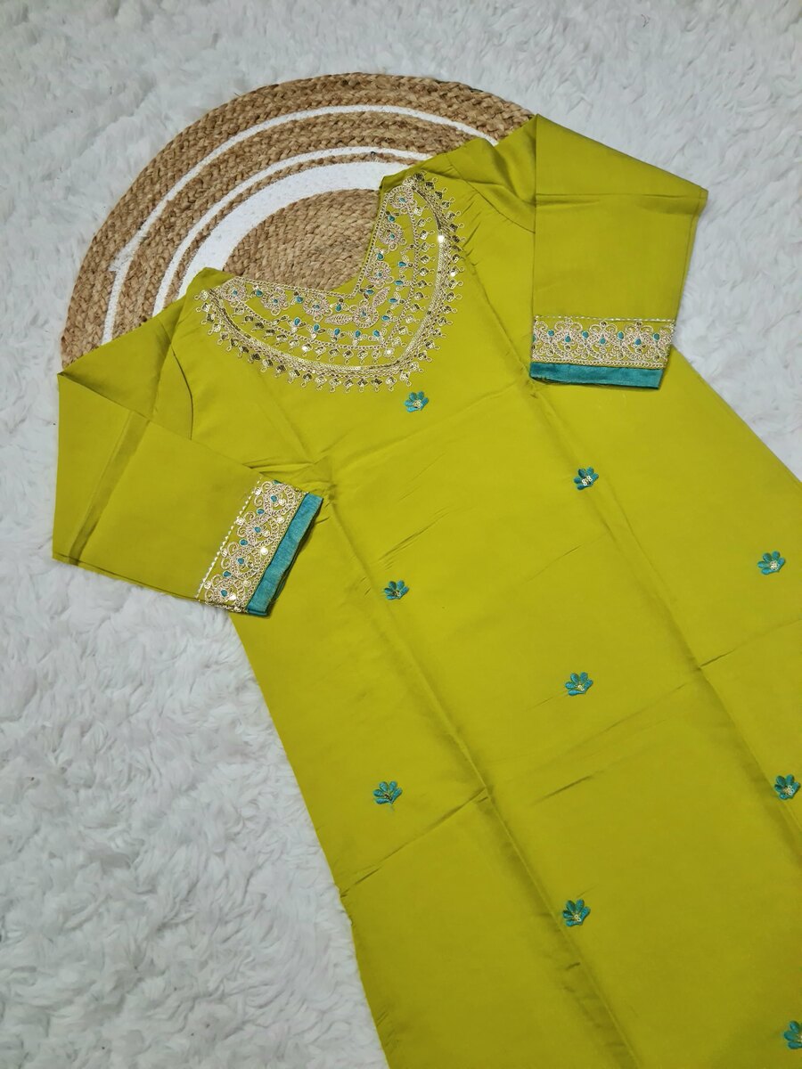 KURTI FABRIC :- 14KG REYON WITH EMBROIDERY DESIGN WORK FULL STITCH NAYRA PATTERN KURTI