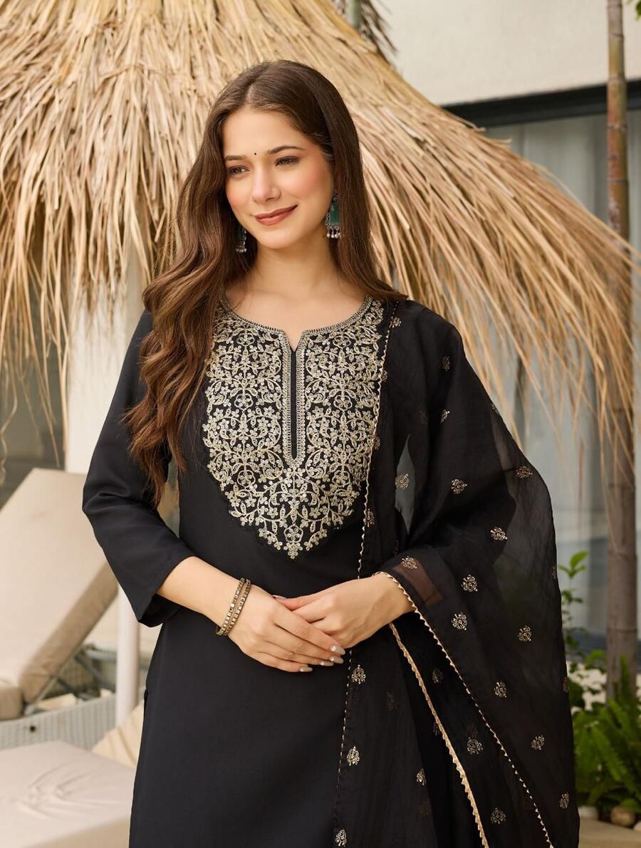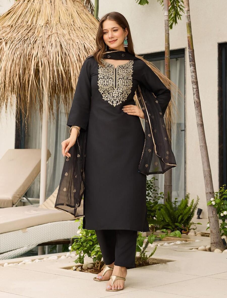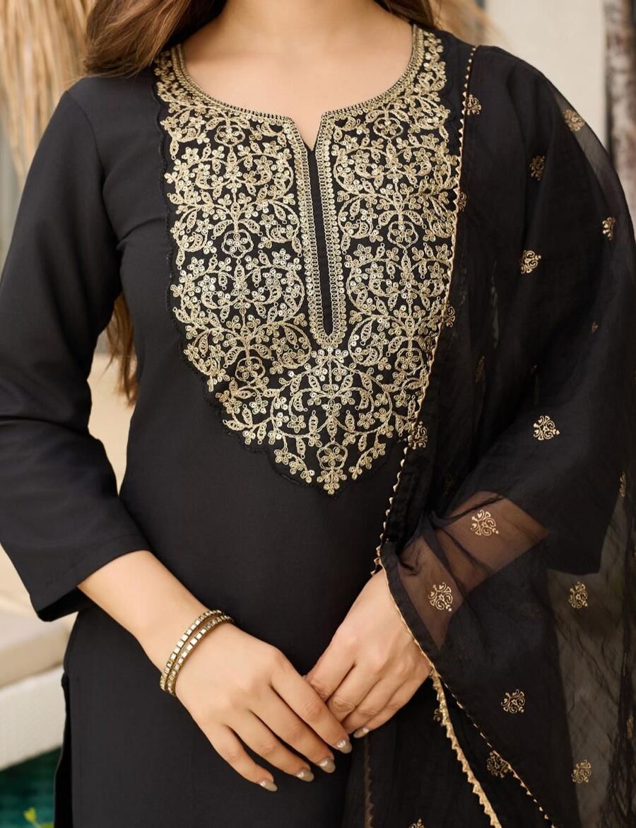 RICH LOOK VISCOSE EMBROIDERY WORK TOP BOTTOM WITH DUPATTA BLACK