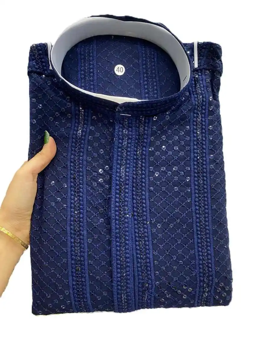 TRADITIONAL RAYON EMBROIDERY SEQUENCE WORK MEN’S KURTA PAYJAMA NAVY BLUE