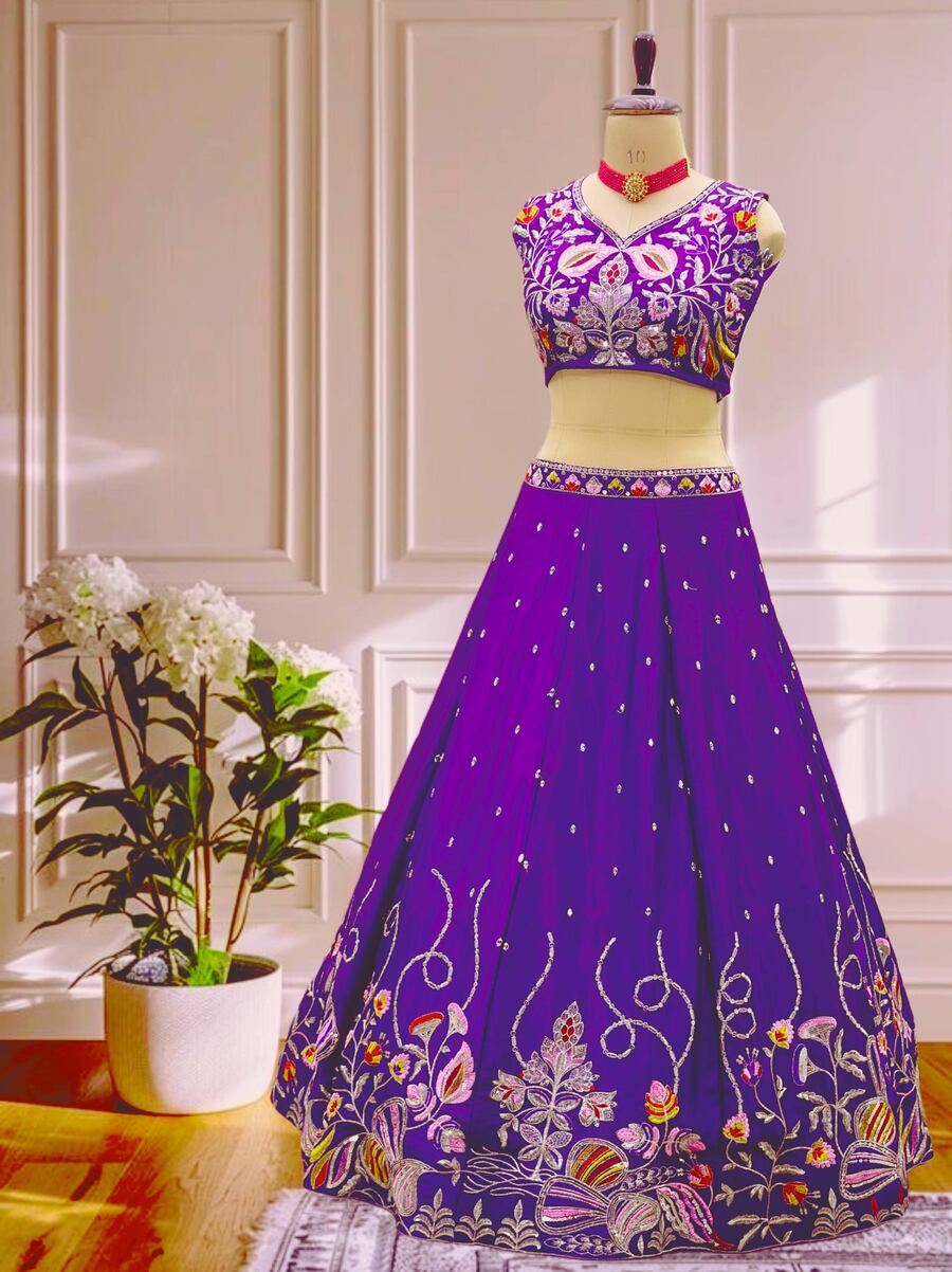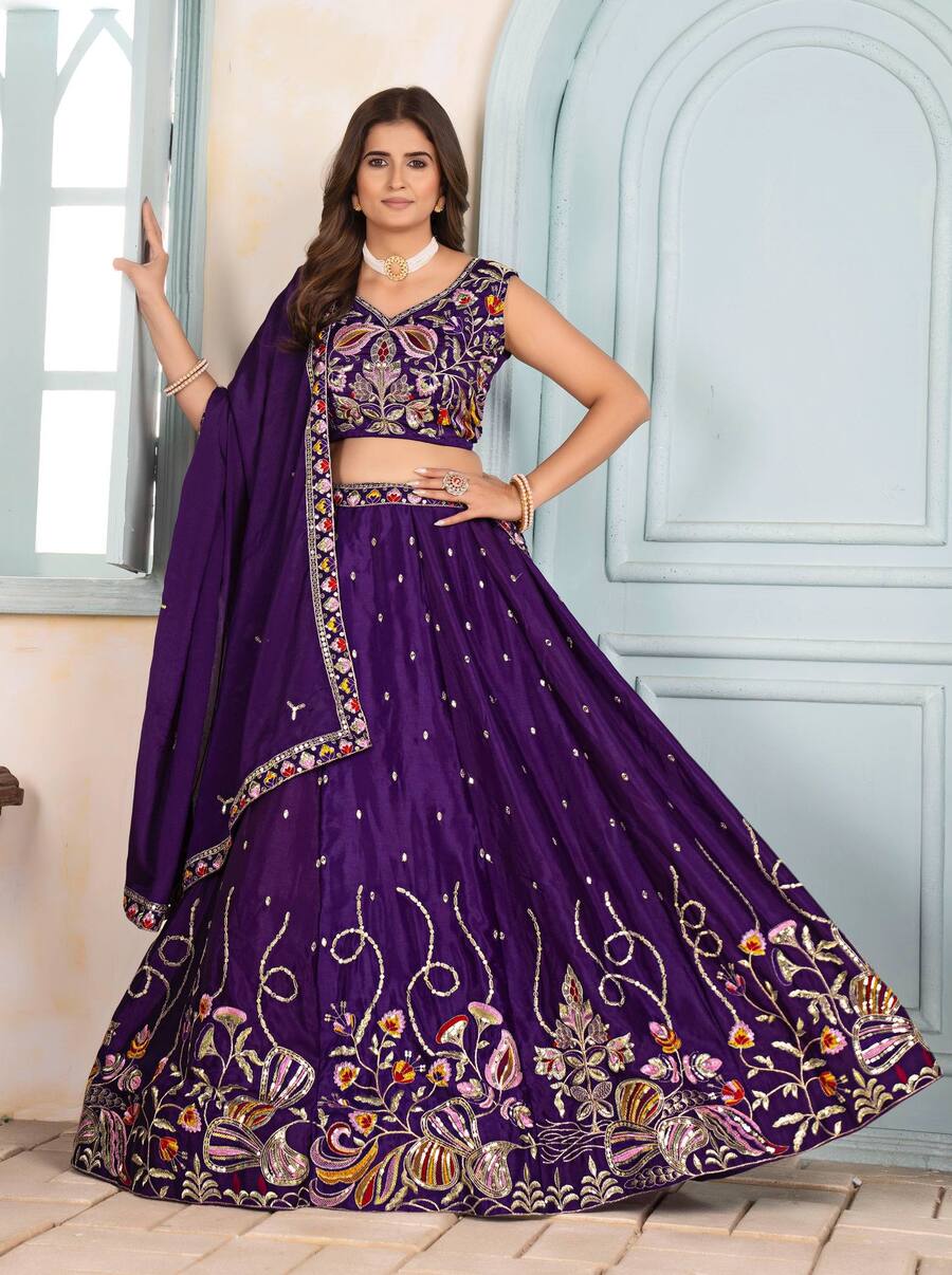 TRENDING CHINON SILK EMBROIDERY SEQUENCE THREAD DESIGN WORK LEHENGA CHOLI WITH DUPATTA PURPLE