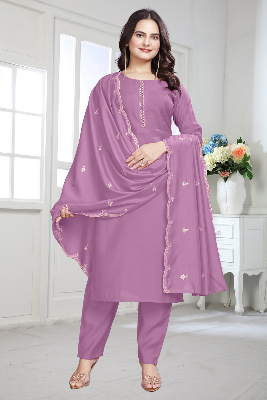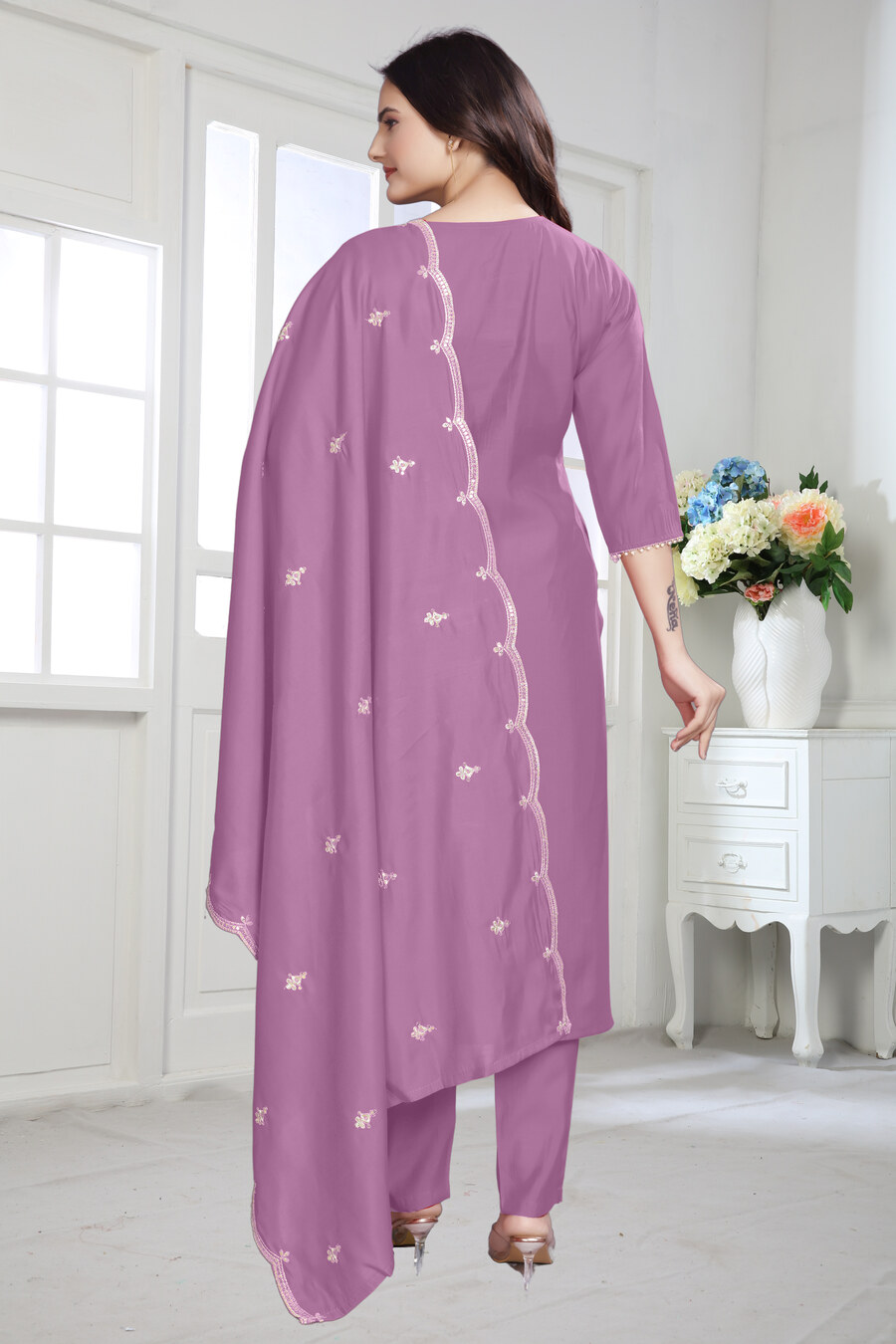 TRENDING COTTON SILK HAND EMBROIDERY WITH MOTI LACE WORK TOP BOTTOM WITH DUPATTA BABY PINK