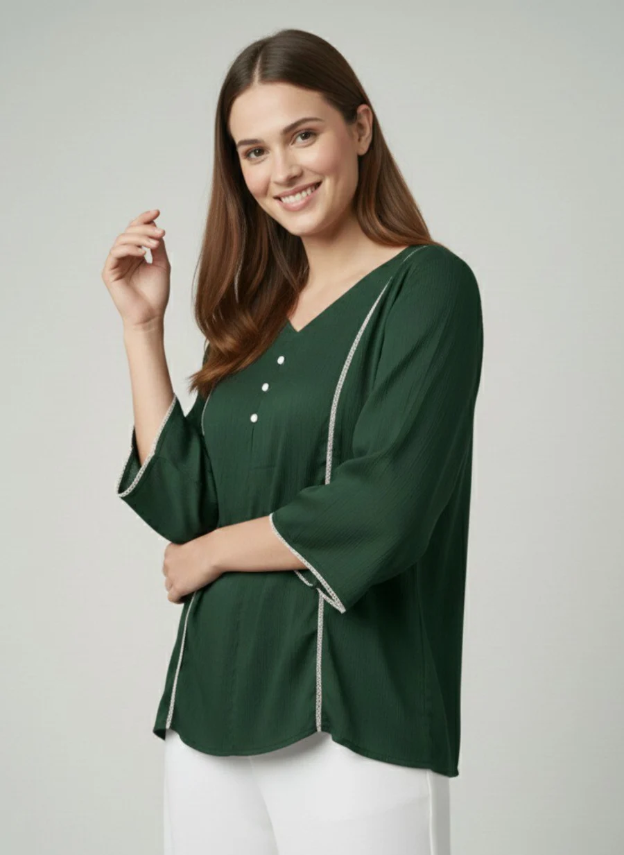 TRENDING DELTA SILK BUTTON LINING WORK ONLY TOP GREEN
