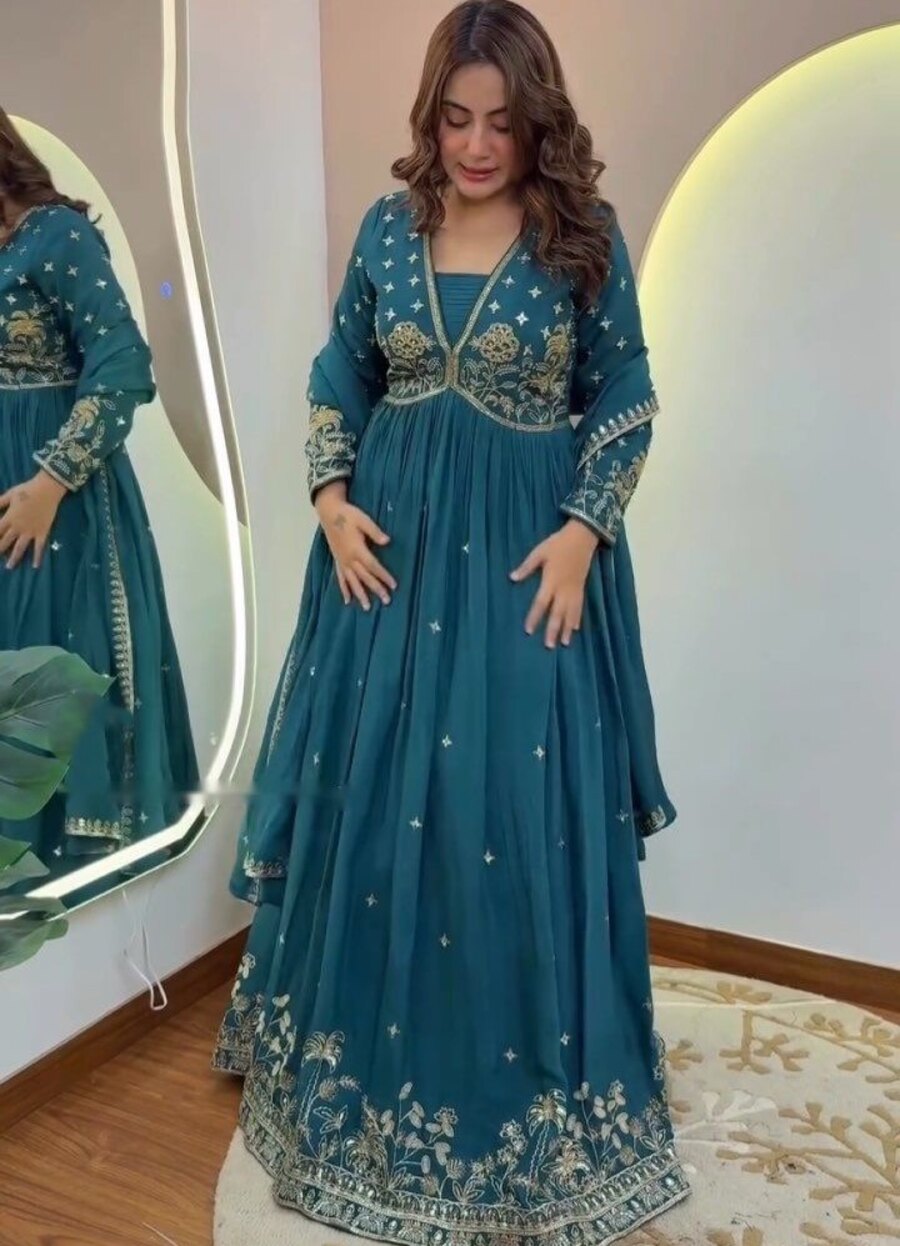 GOWN :- PURE FAUX GEORGETTE WITH EMBROIDERY SEQUENCE DESIGN WORK