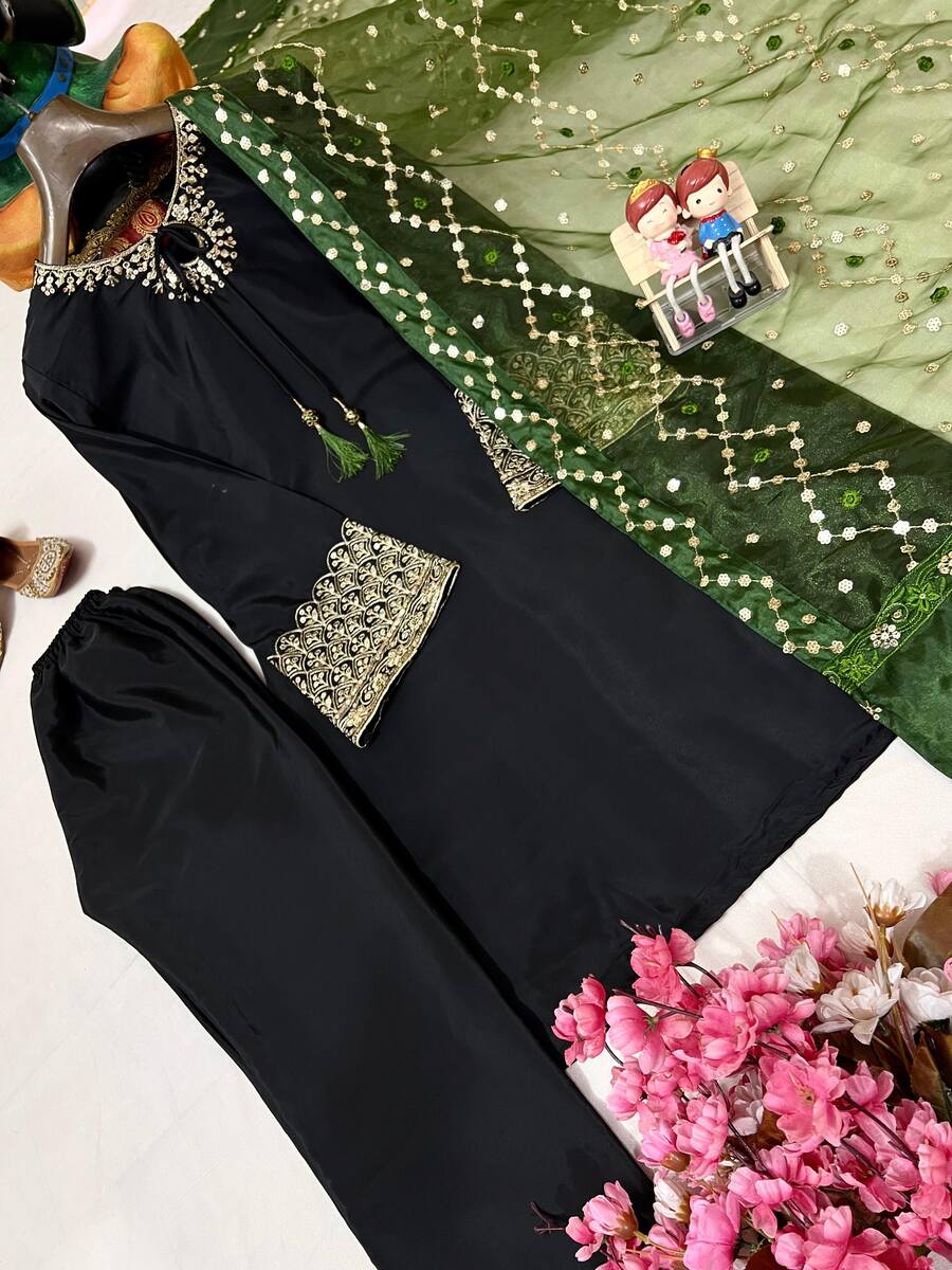 TRENDING FRENCH CREPE SILK THREAD & ZARI EMBROIDERY WORK TOP BOTTOM WITH DUPATTA BLACK